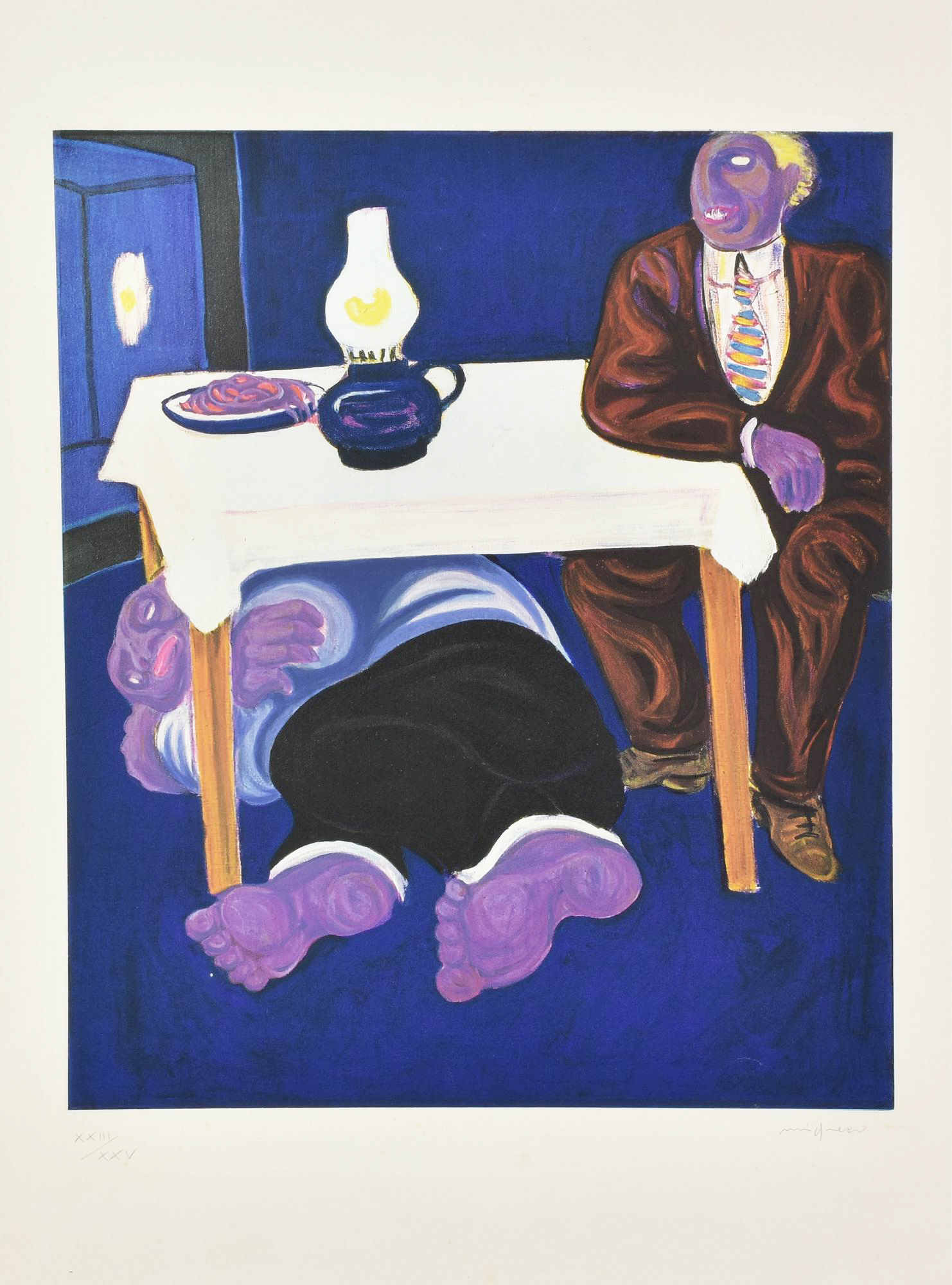Giuseppe Migneco (1908 - 1997) LA CENA incisione, cm 54x44,5, su foglio cm...