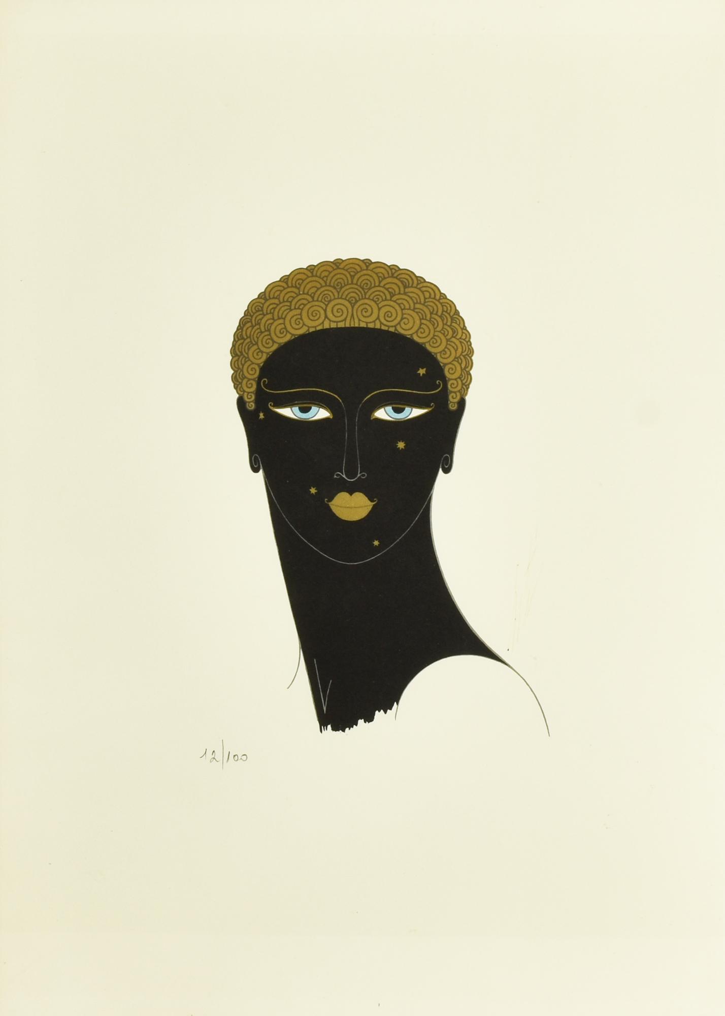 Erte' (1892 - 1990) RITRATTO litografia, cm 50x35; es. 12/100 firma e tiratura
