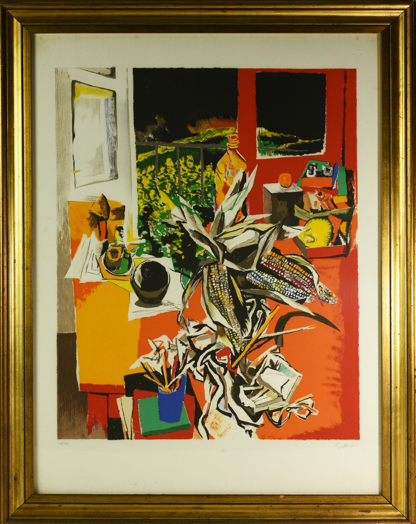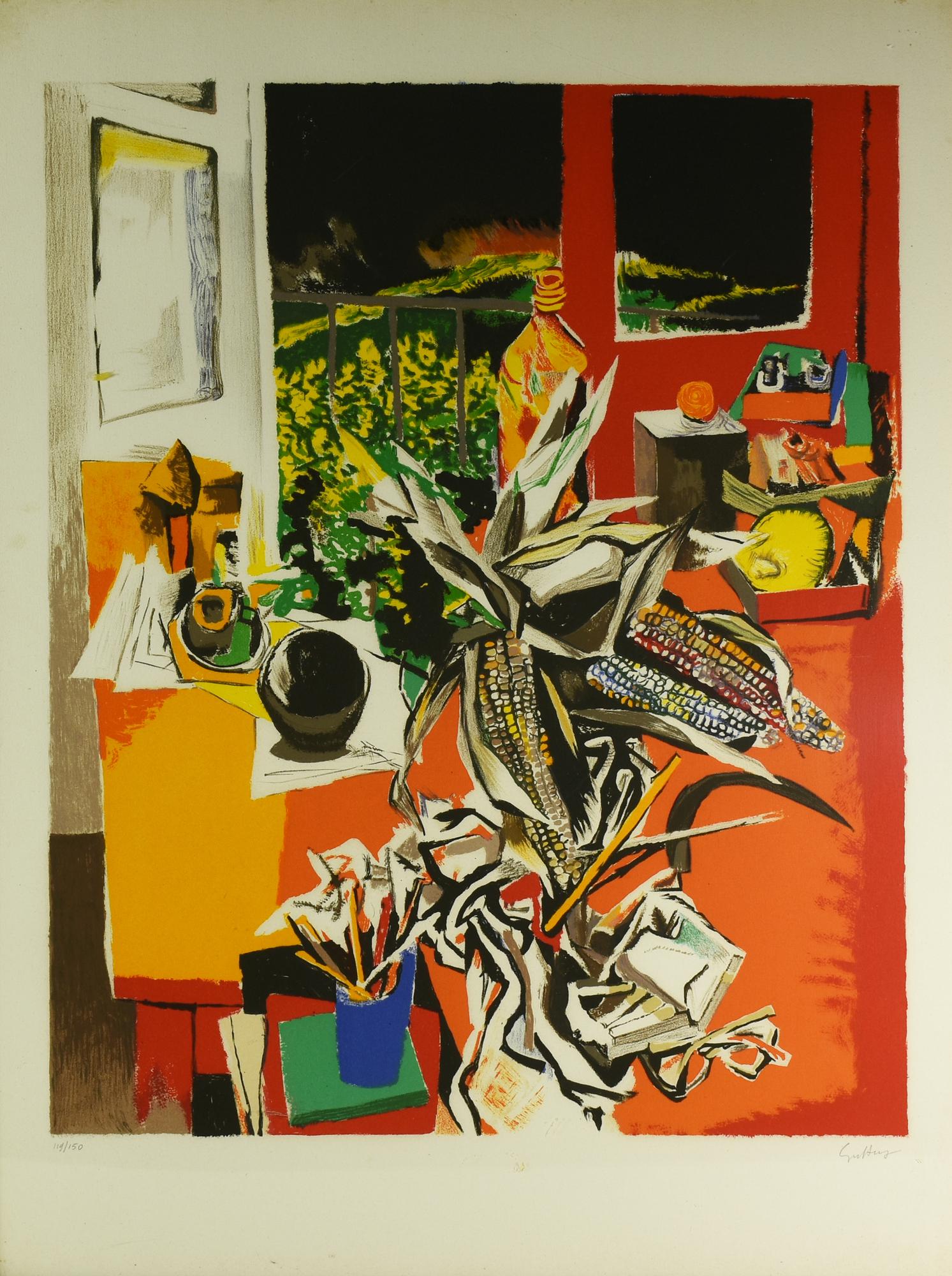 Renato Guttuso (1911 - 1987) FINESTRA STUDIO CON GRANTURCO litografia, cm...