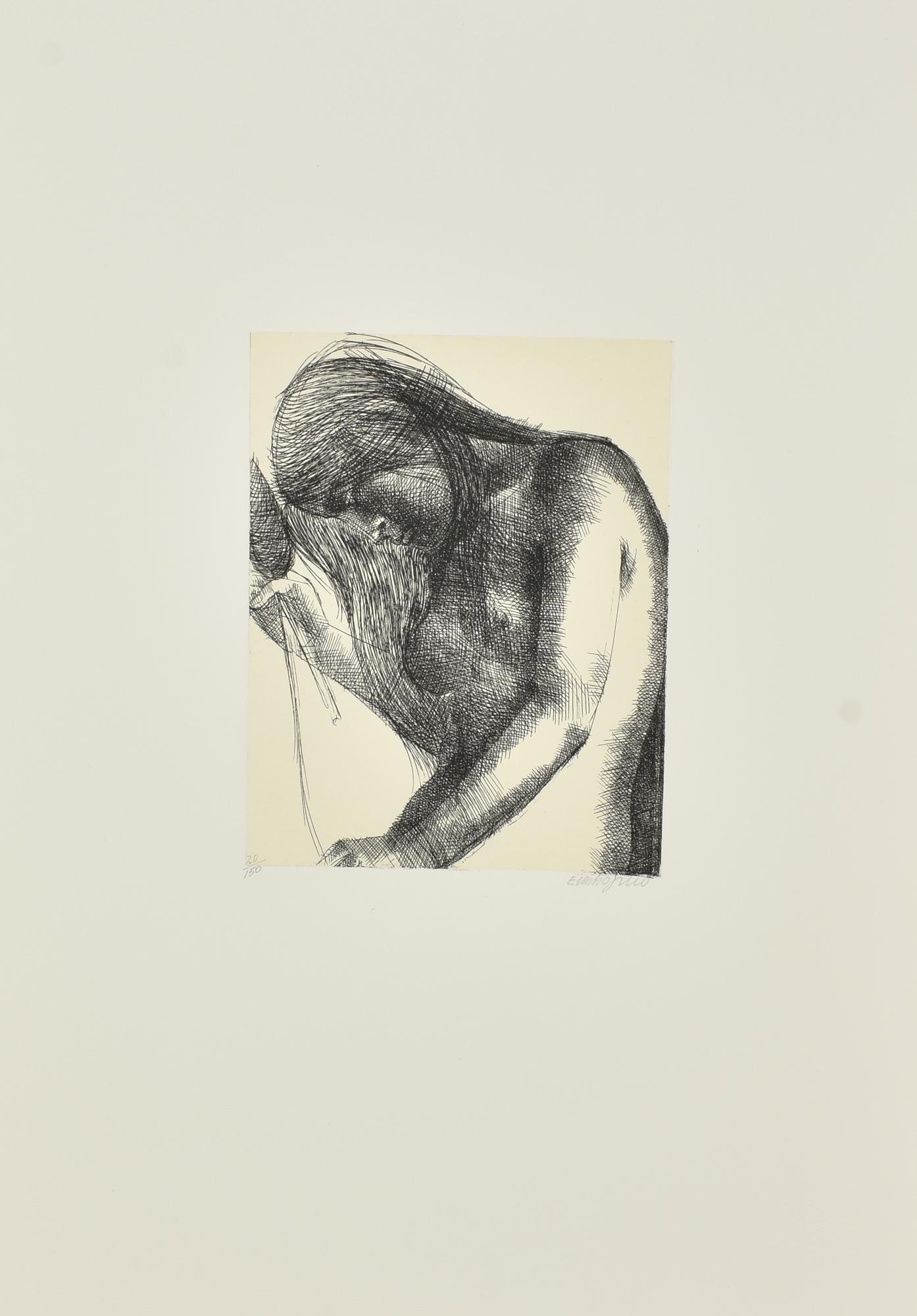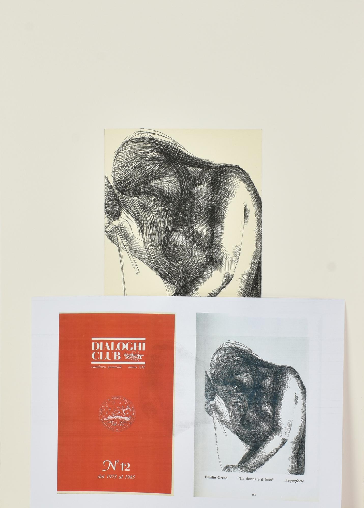Emilio Greco (1913 - 1995) LA DONNA E IL FUSO acquaforte, cm 19,5x15, su...