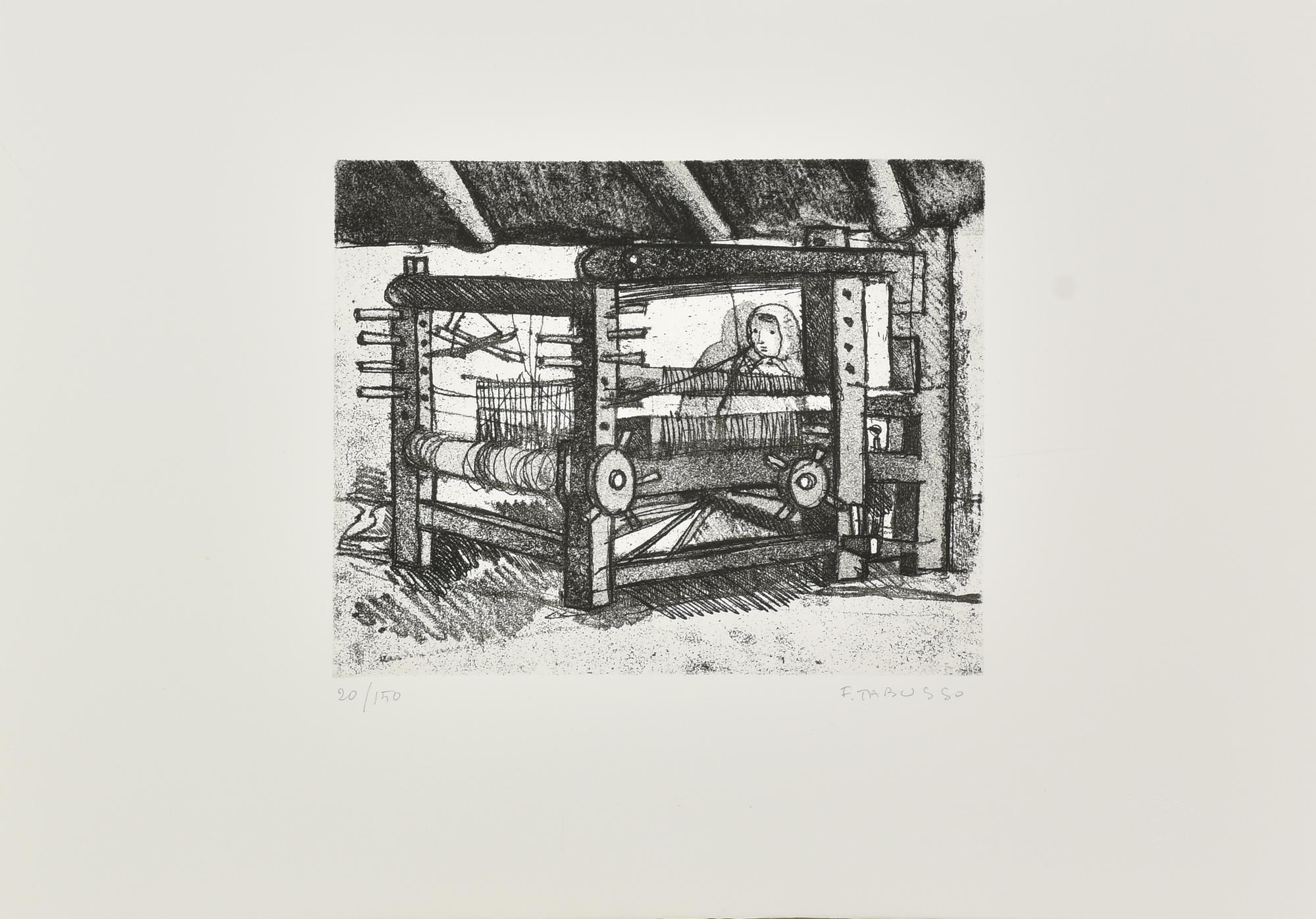 Francesco Tabusso (1930) TELAIO IN LEGNO incisione ceramolle-acquatinta, cm...