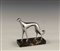 Scultura Decò raffigurante levriero in metallo poggiante su base rettangolare in marmo, cm. 17x16x7.