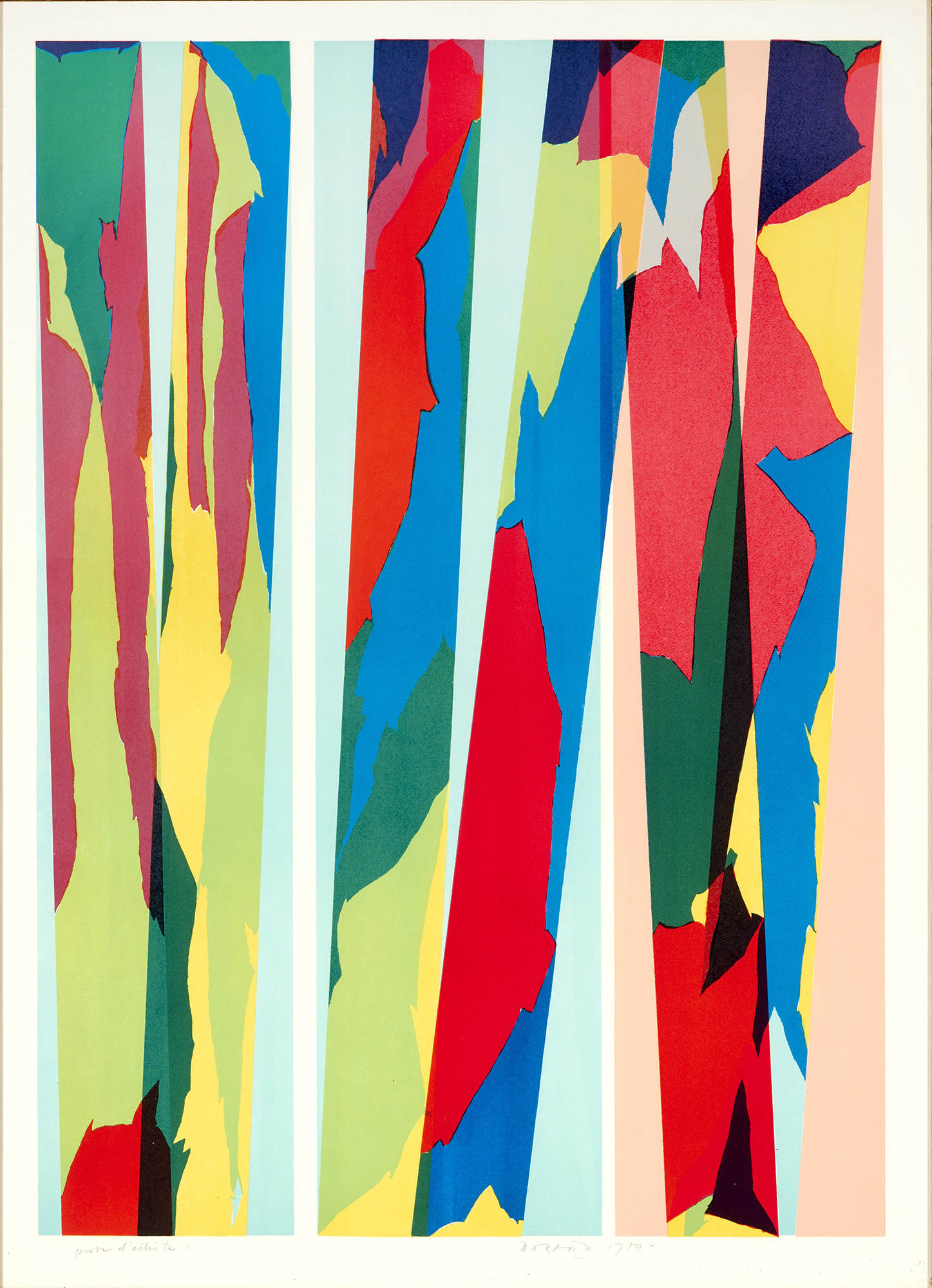 Firma e data a matita sul margine in basso a destra: Dorazio 1970, tiratura in basso a sinistra: prova d'artista, timbro a secco Erker Presse, St. Gallen.
