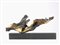 Scultura in bronzo patinato con lucidi parziali su base in ferro