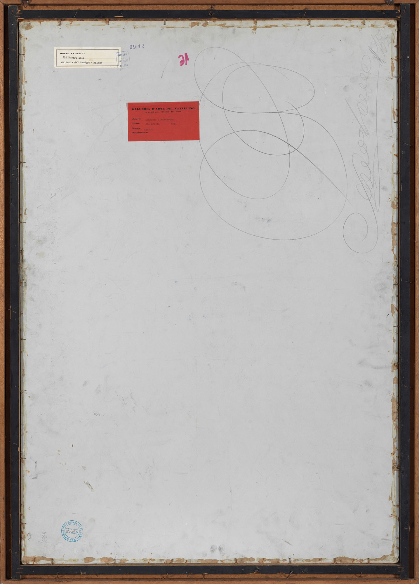 Etichetta e timbro Galleria d'Arte del Cavallino, Venezia, sul retro