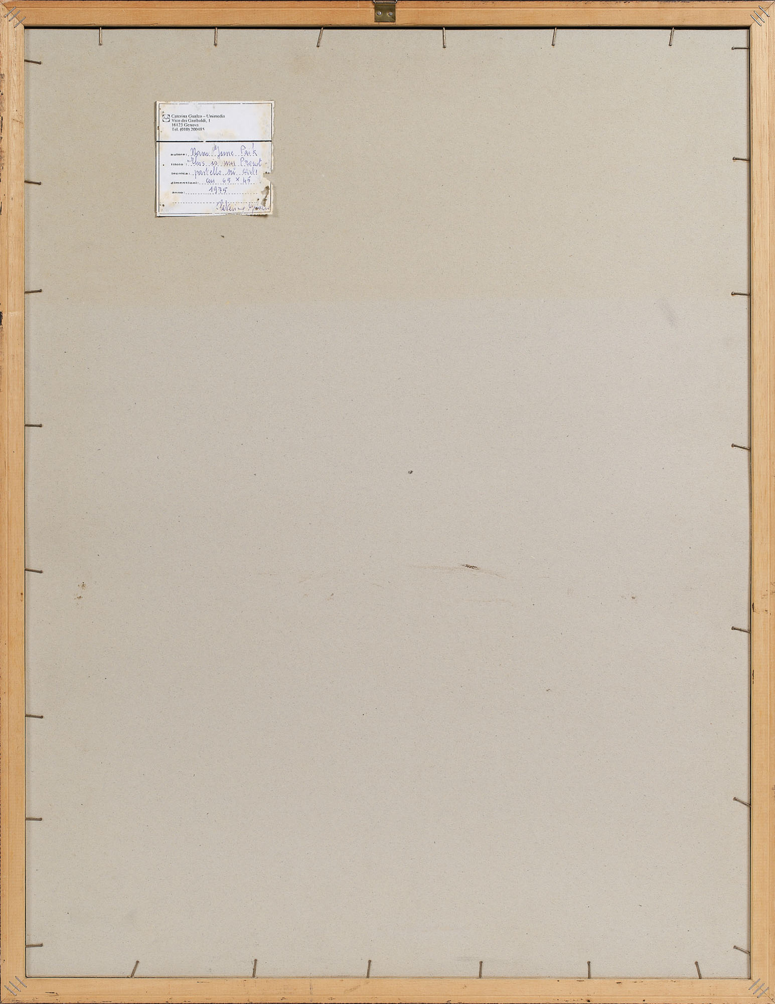 Etichetta Galleria Gualco-Unimedia, Genova sul retro