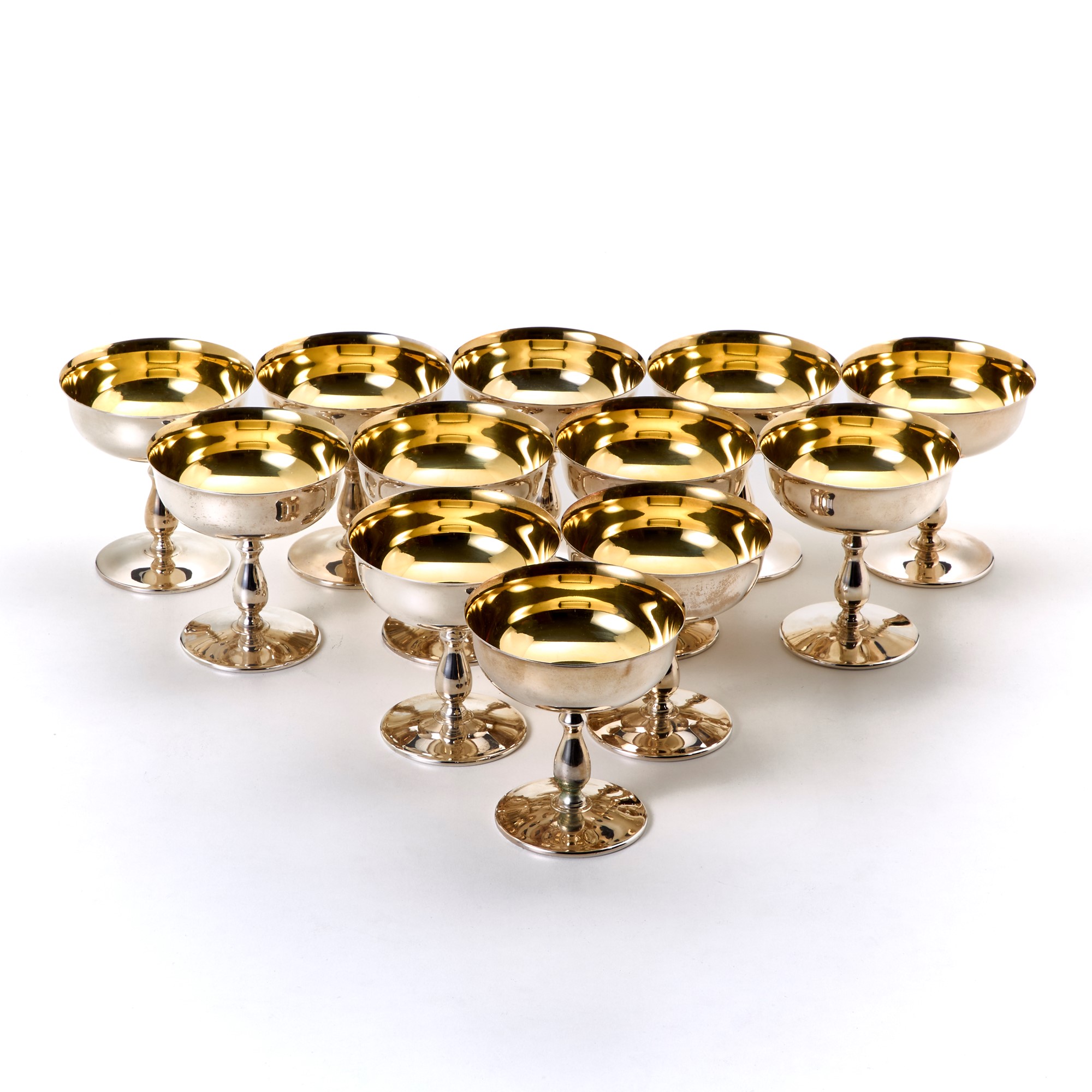 Lot consisting of twelve smooth-bodied silver champagne glasses
