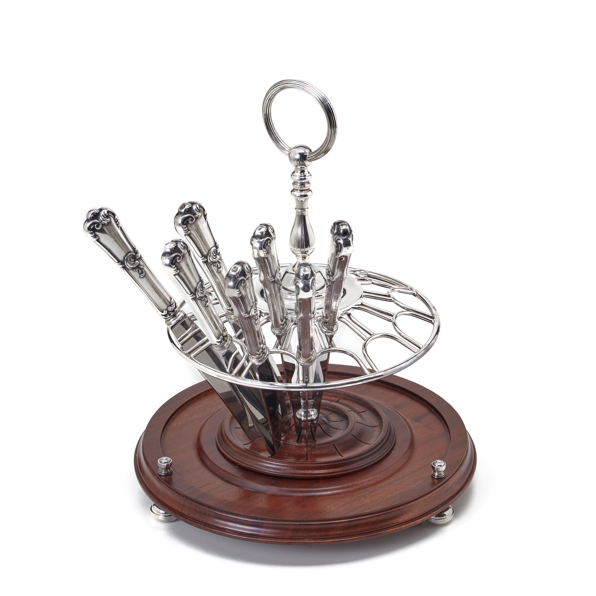 Portacoltelli Christofle in metallo con base rotonda in mogano. Corredato di...