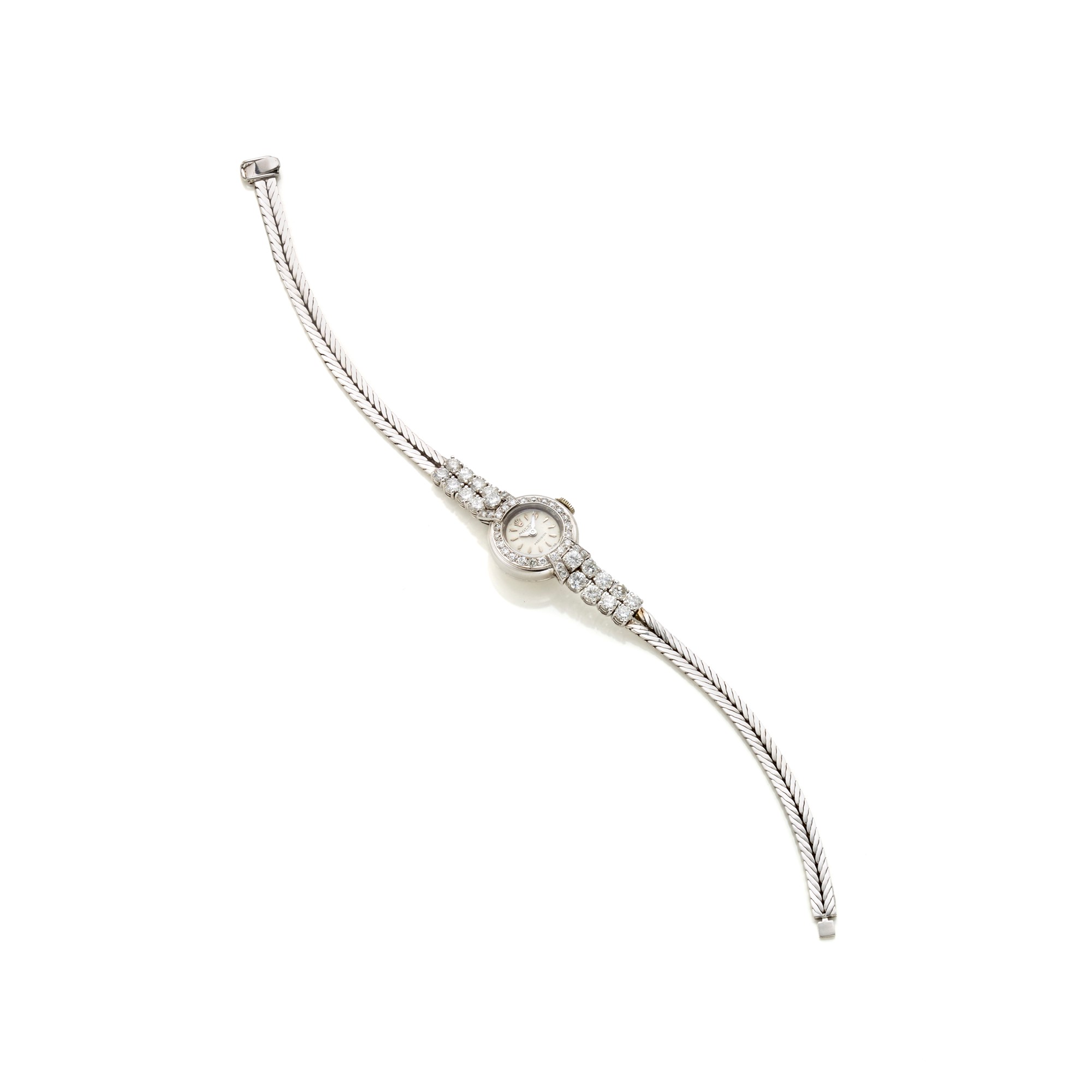 1960s Rolex 18 Kt white gold wristwatch set with round diamonds totalling approx. 2,05 ct. Manual-winding movement.