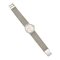 Omega De Ville, 1960s/'70s. 18 Kt white gold case with round diamond bezel and integrated gold bracelet with safety clasp. Manual movement. Good condition. Case 26 mm