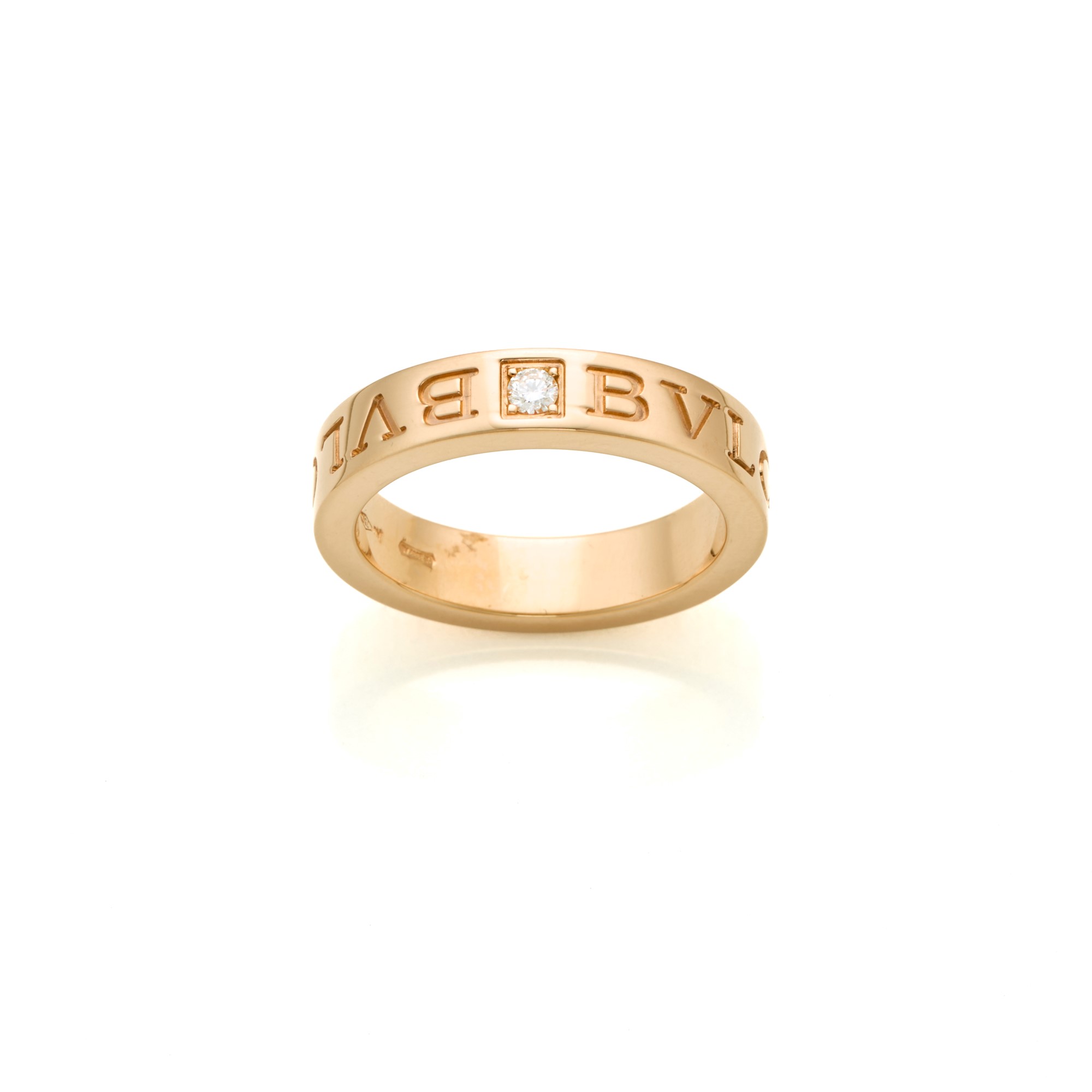18 Kt pink gold ring signed Bulgari, Bulgari Bulgari collection, with round diamond