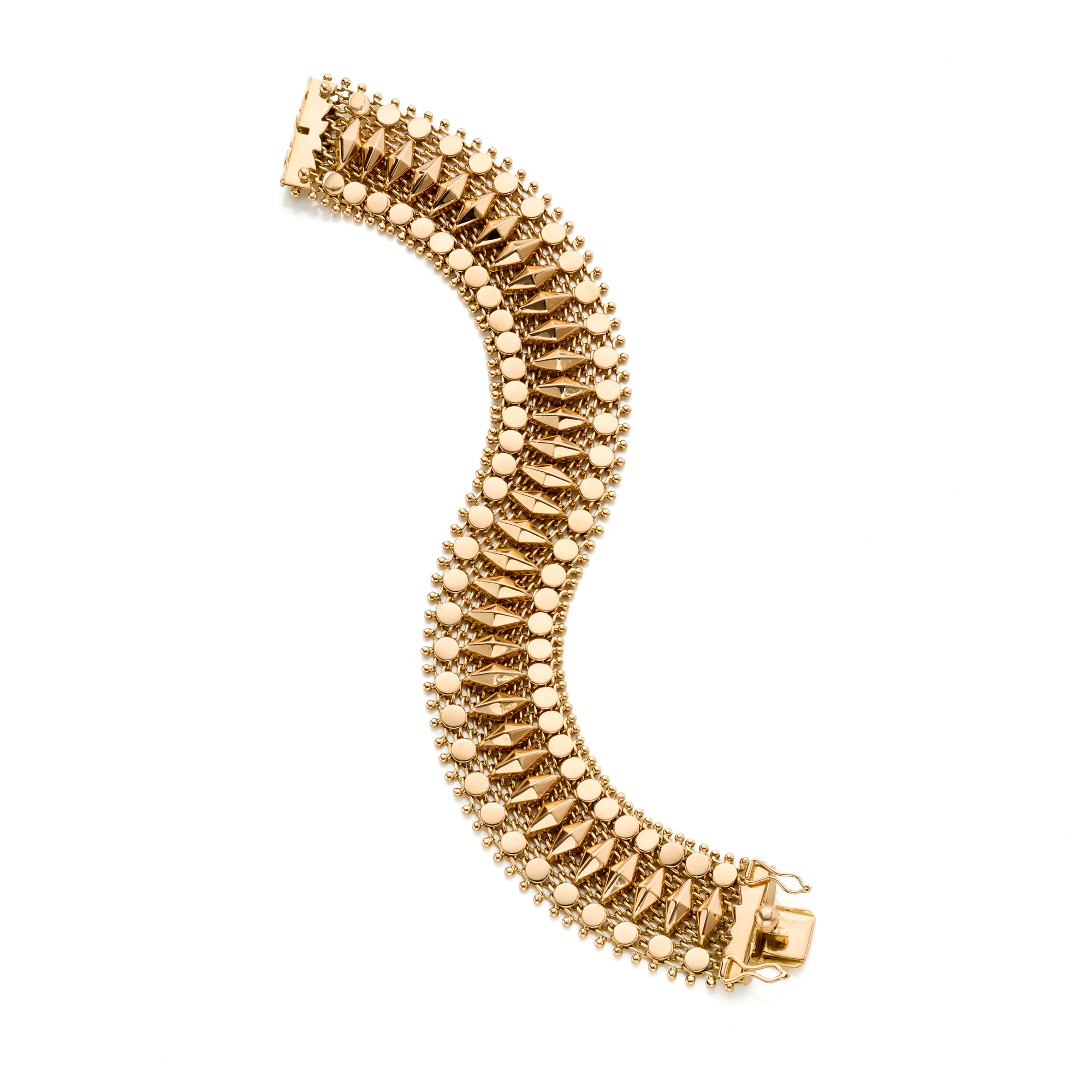 Bracciale a fascia modulare in oro rosa 18 Kt Lunghezza circa 19 cm Peso...