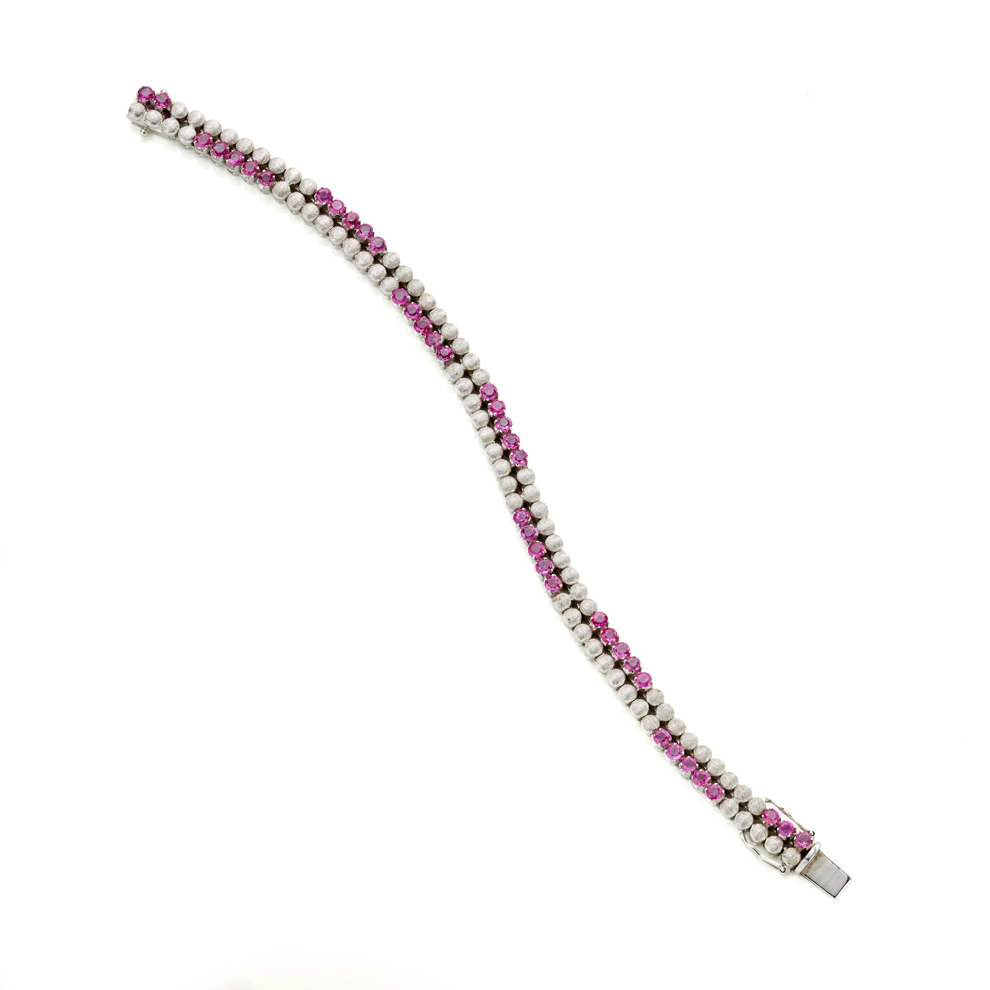 18 Kt satin-finished white gold bracelet with round rubies totalling approx. 2 ct