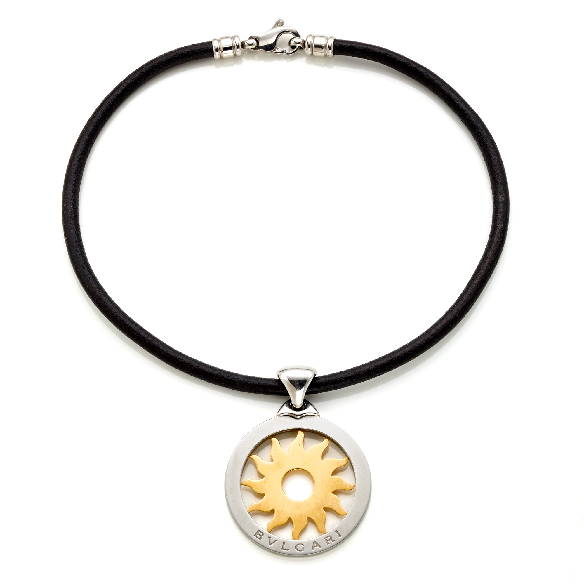 Bulgari Tondo pendant in 18 Kt yellow gold and steel, cord with signed steel clasp