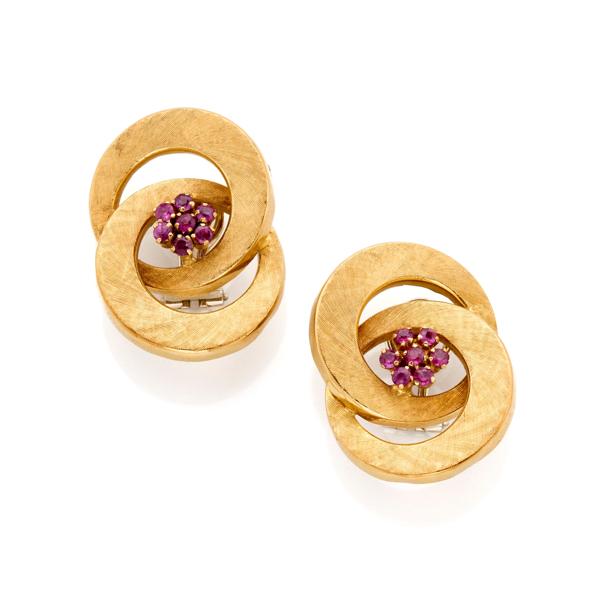 Orecchini in oro giallo 18 Kt satinato con rubini rotondi