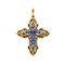 Croce in oro giallo 18 Kt con smalti, zaffiri ovali cabochon per complessivi...