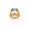Anello Villa, collezione Micromosaico, in oro giallo 18 Kt con tanzanite ottagonale del peso di circa 15,65 ct e corindoni gialli rotondi per complessivi circa 6,80 ct