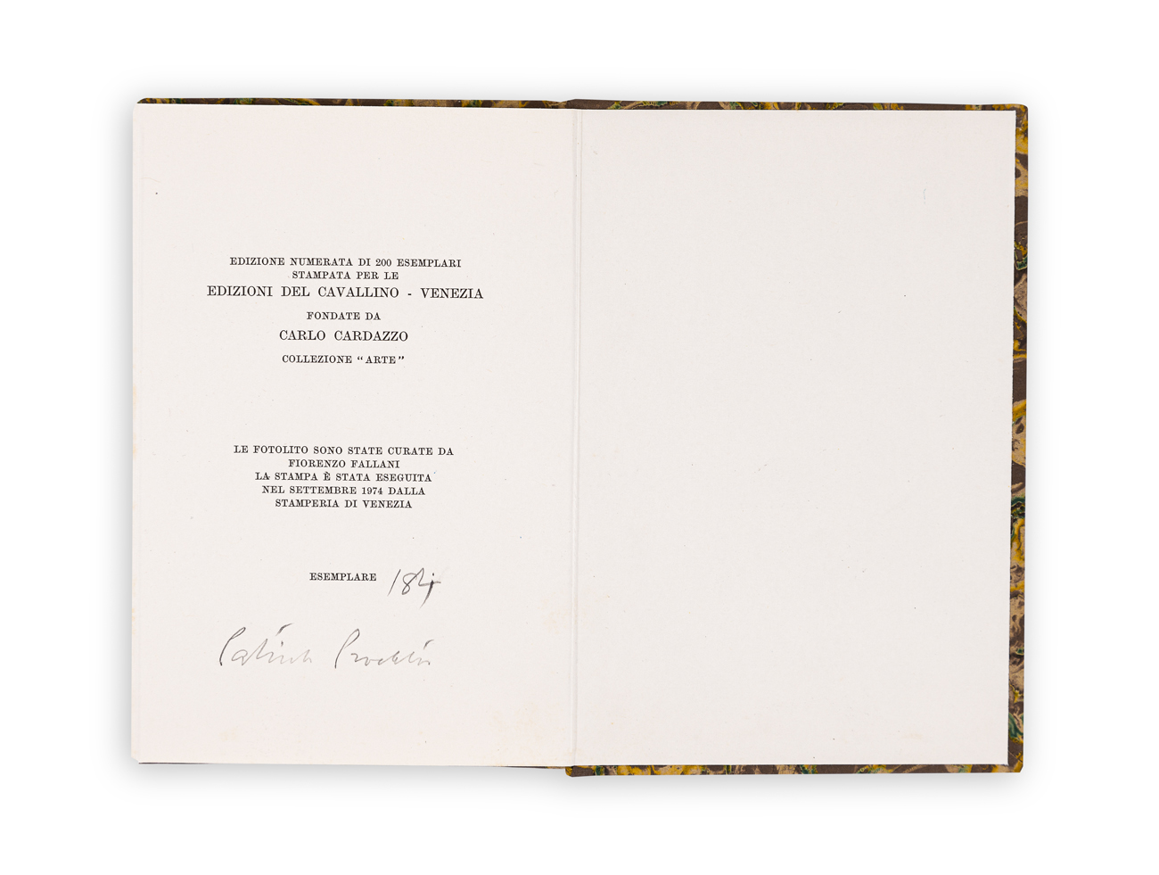 Edizione numerata realizzata in 200 esemplari per le Edizioni Del Cavallino - Venezia (Collezione Arte)