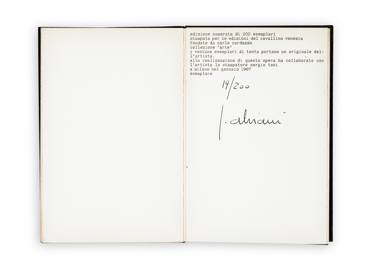 Edizione numerata realizzata in 200 esemplari per le Edizioni Del Cavallino - Venezia (Collezione Arte)