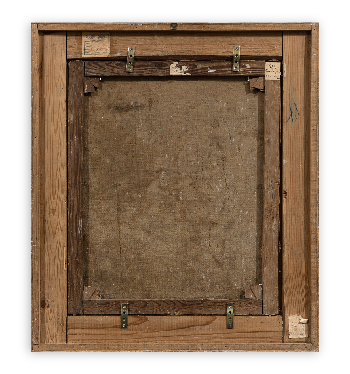 Etichetta della Galleria Genova (GE) con caratteristiche tecniche dell'opera al retro