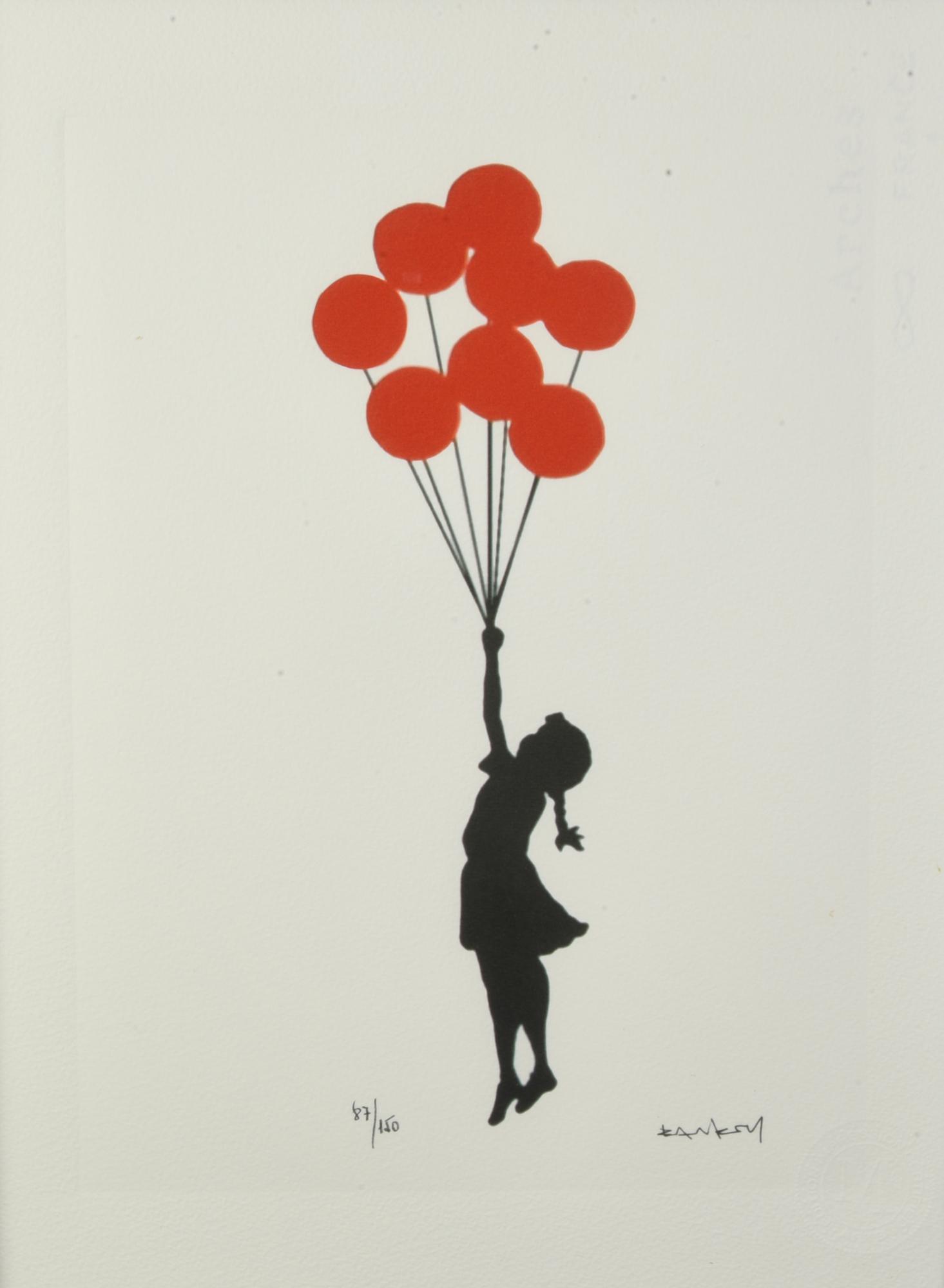 Lot 31 | Da Banksy GIRL WITH BALLOONS PALESTINE eliografia su carta Arches, cm 38x28;...