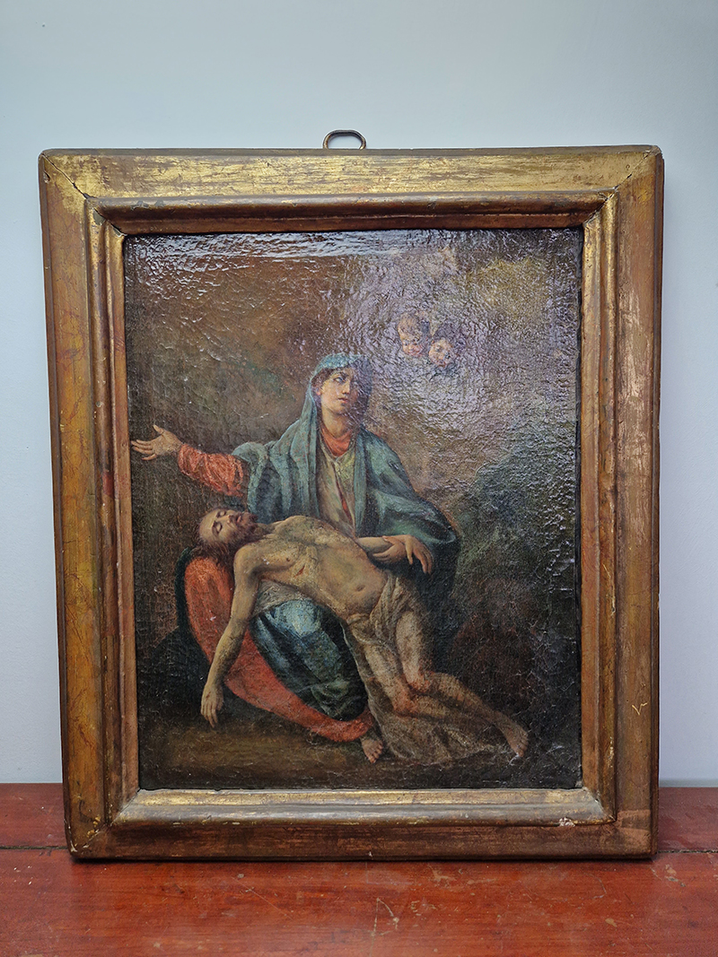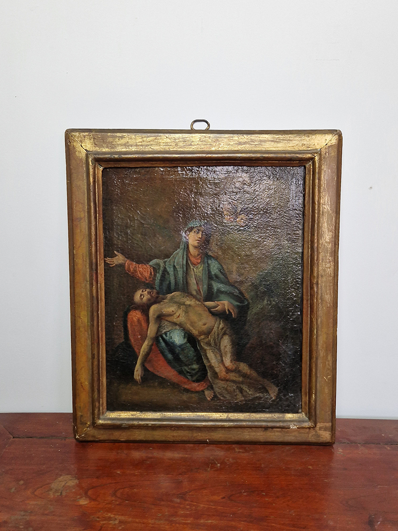 Olio su tela con cornice coeva raffigurante scena sacra