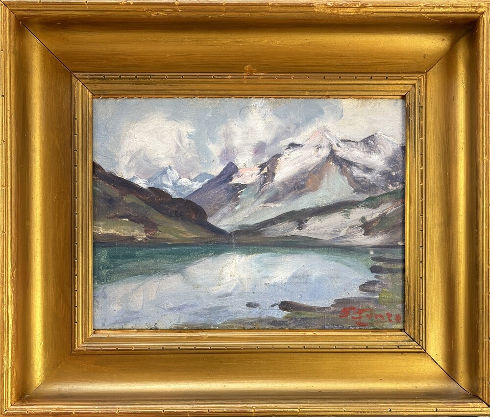 Paolo Punzo Bergamo 1906 - 1979 Paesaggio Montano innevato Olio su cartone 20x27