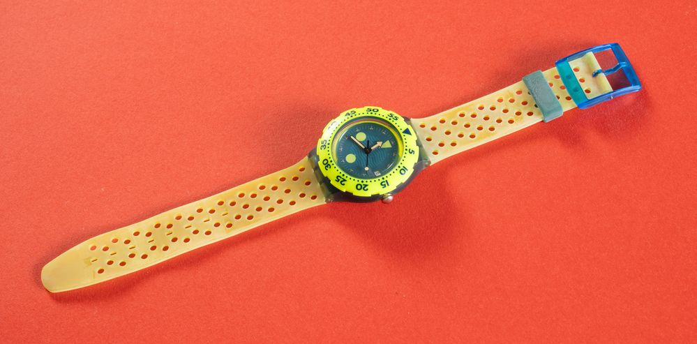 SWATCH SCUBA SDN400 BORA BORA Anno 1990, cassa in plastica, cinturino in...