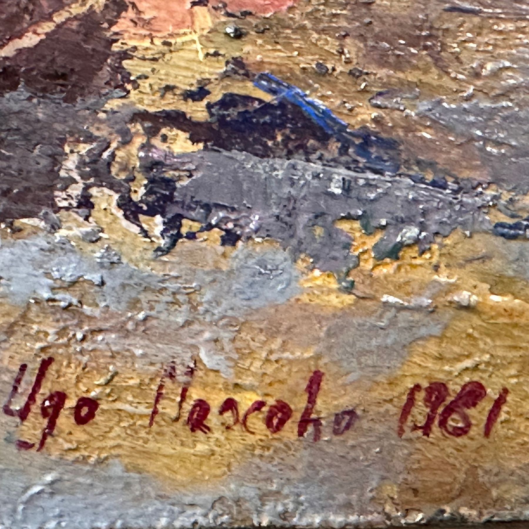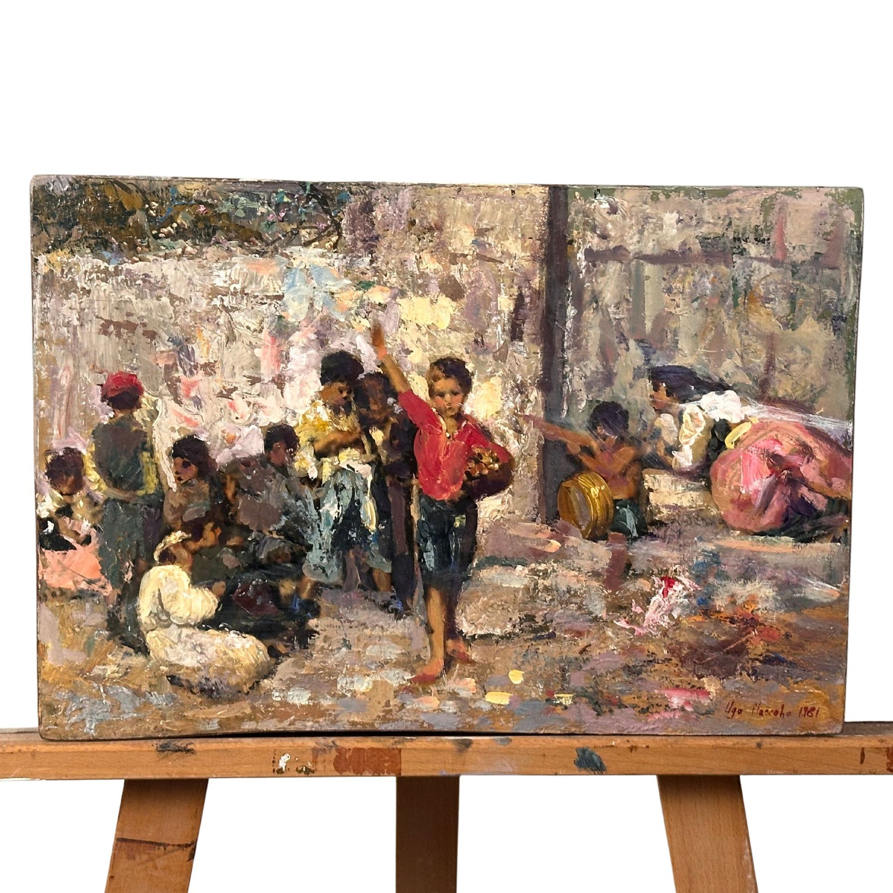 Dipinto Olio su tavola scuola italiana del XX secolo nella maniera di Vincenzo Irolli. Artista Ugo Mascolo.