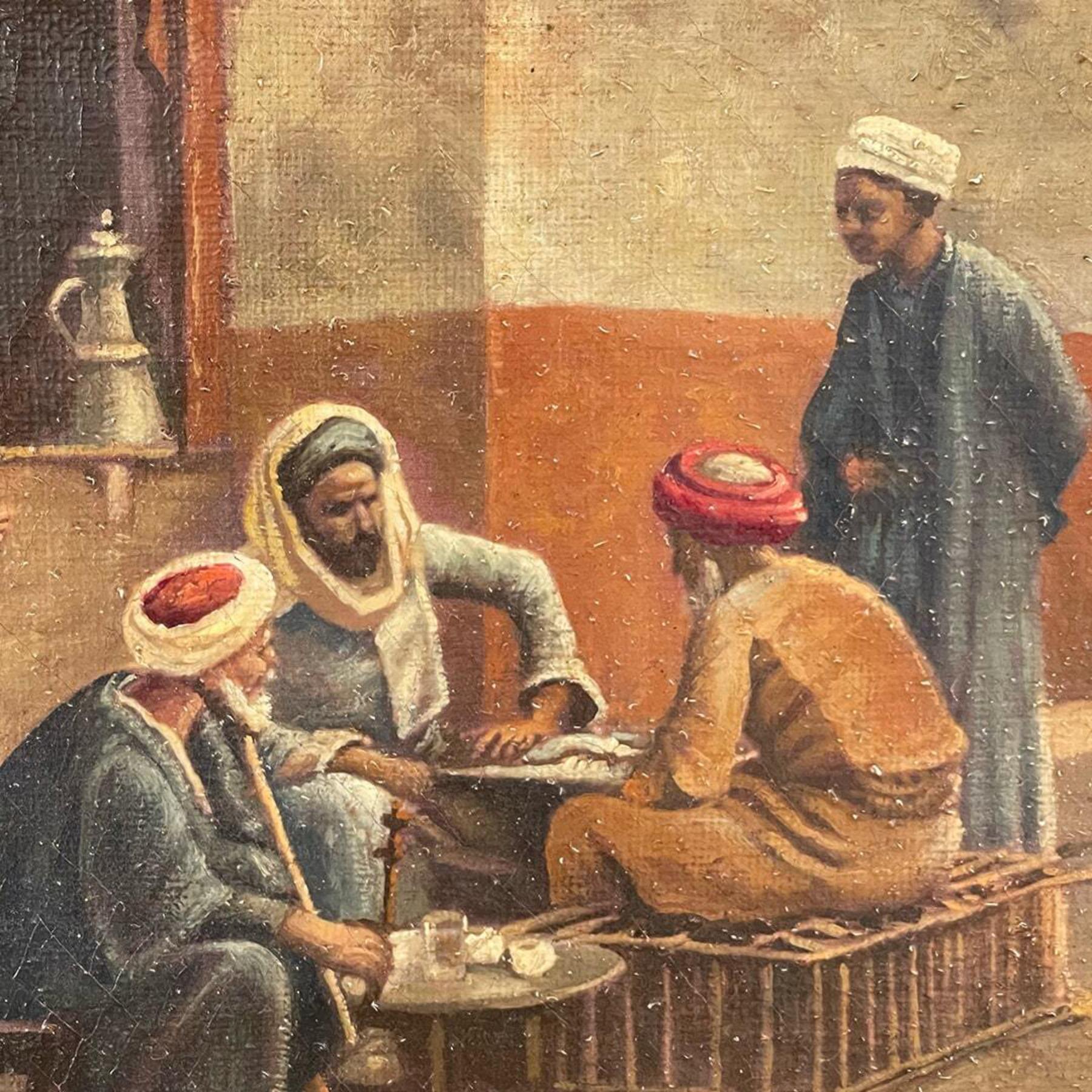 Dipinto olio su tela, scena Orientale, Scuola Europea, XX secolo. Artista anonimo.