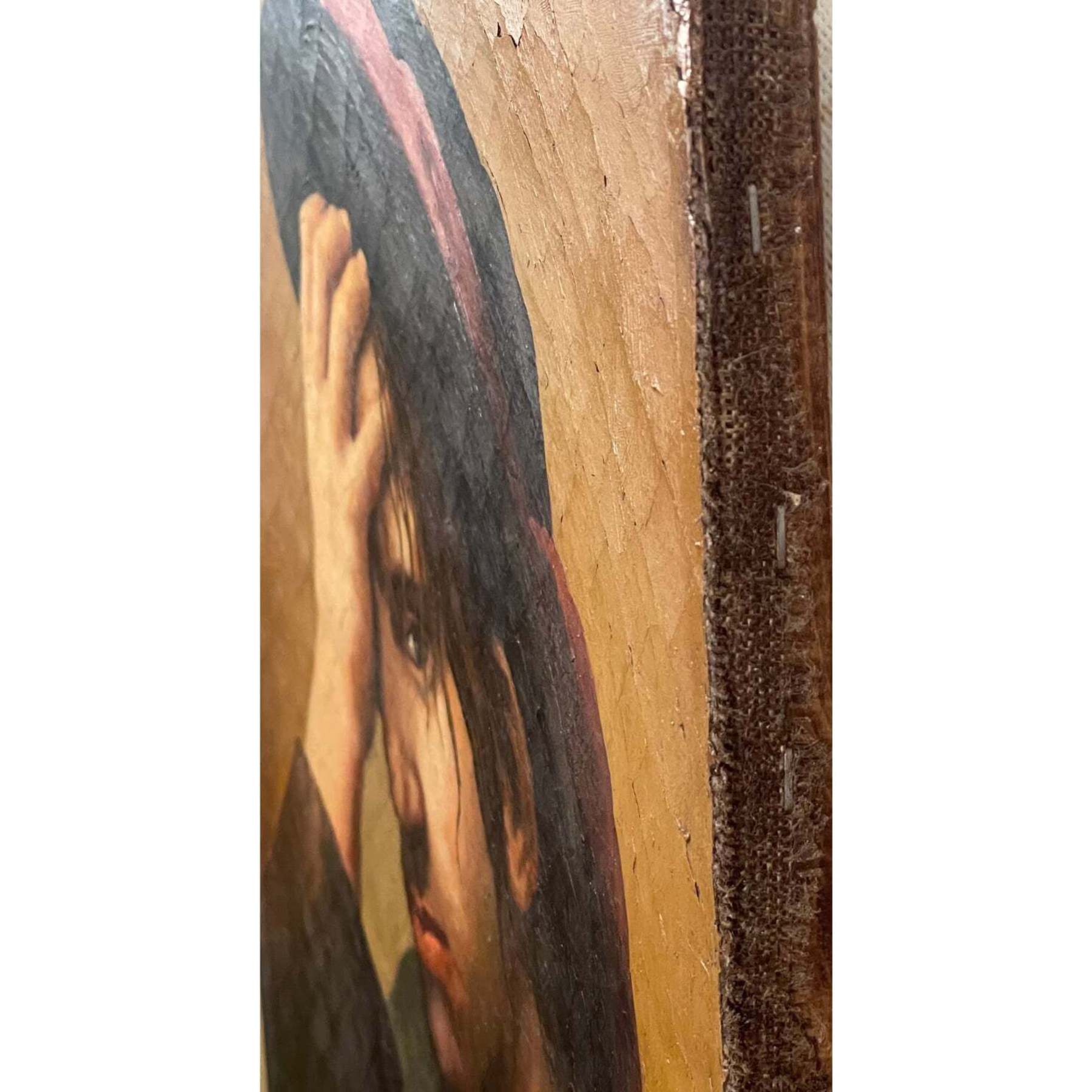Dipinto olio su tela Scuola Europea, raffigurante Ritratto di Uomo con cappello. Copia d'autore. Artista anonimo.