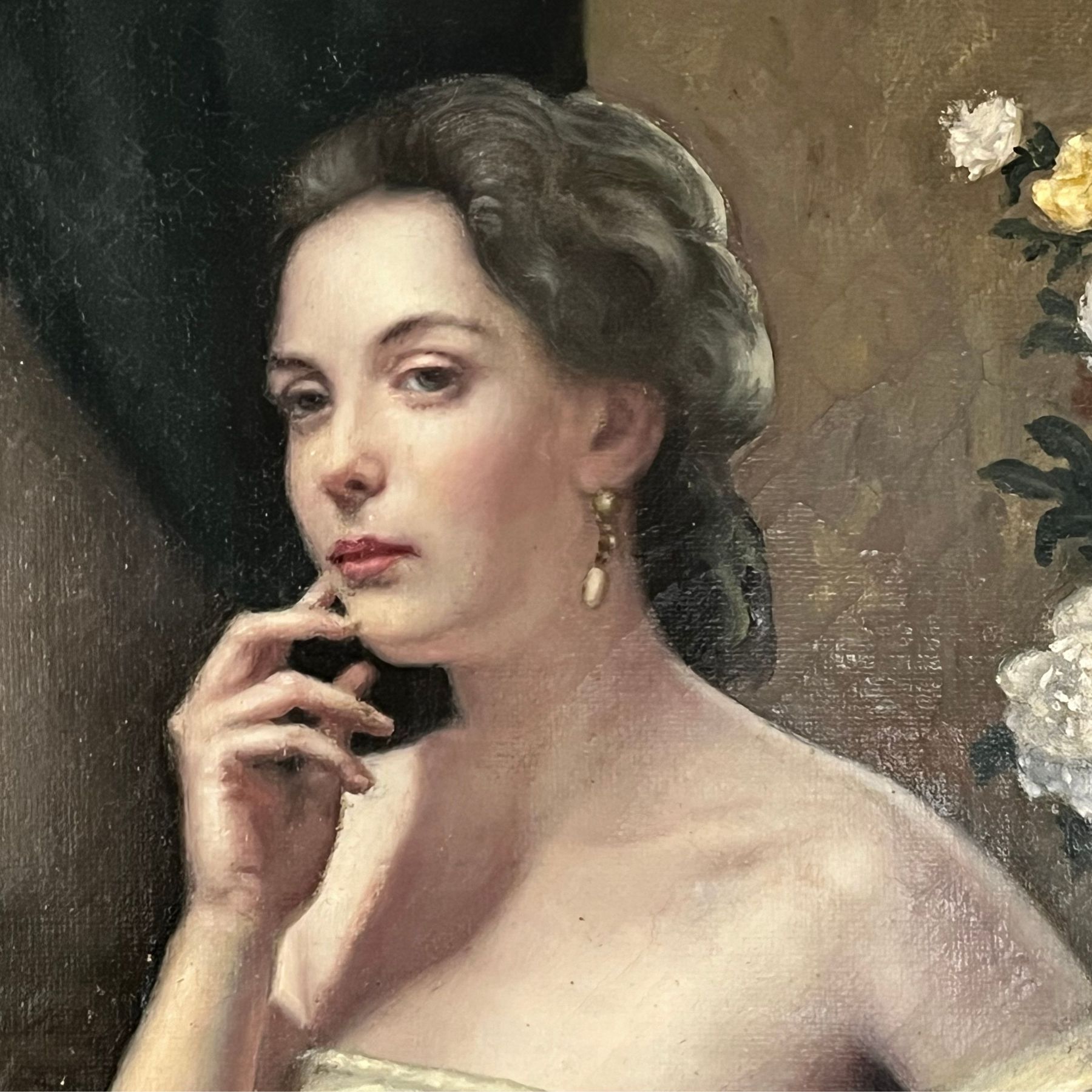 Dipinto olio su tela, raffigurante Donna in abito Bianco. Scuola Italiana artista anonimo XX secolo. Artista anonimo.