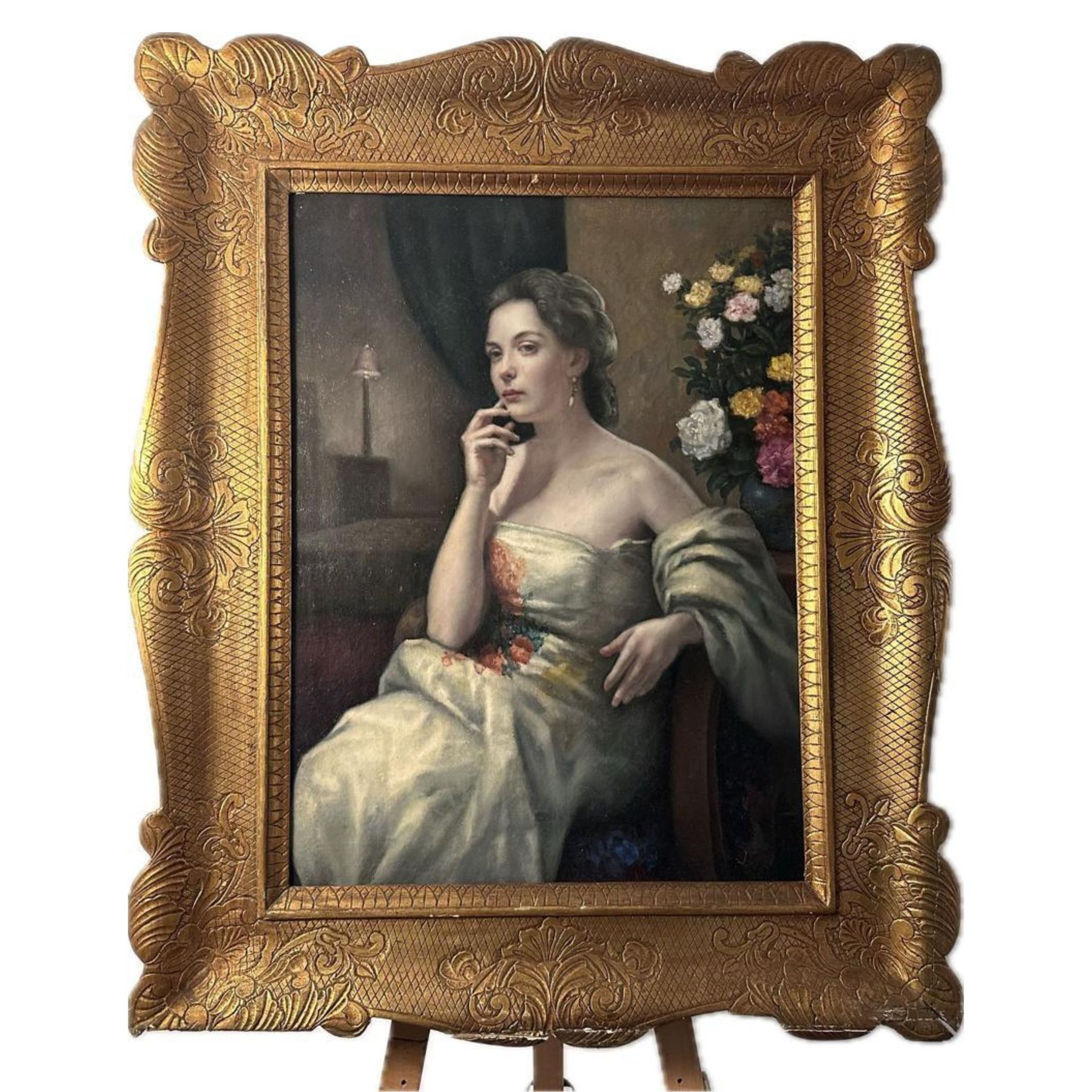 Dipinto olio su tela, raffigurante Donna in abito Bianco. Scuola Italiana...