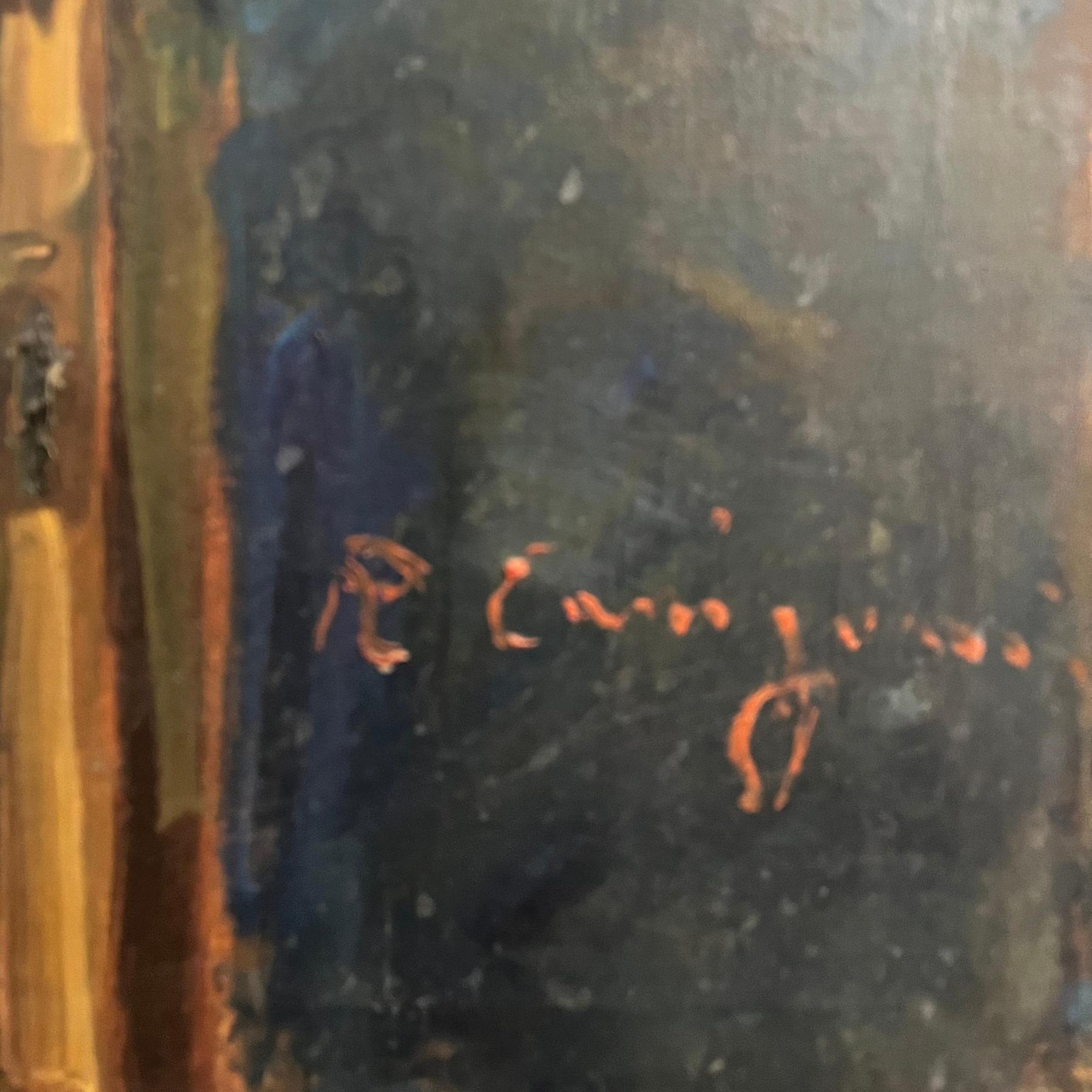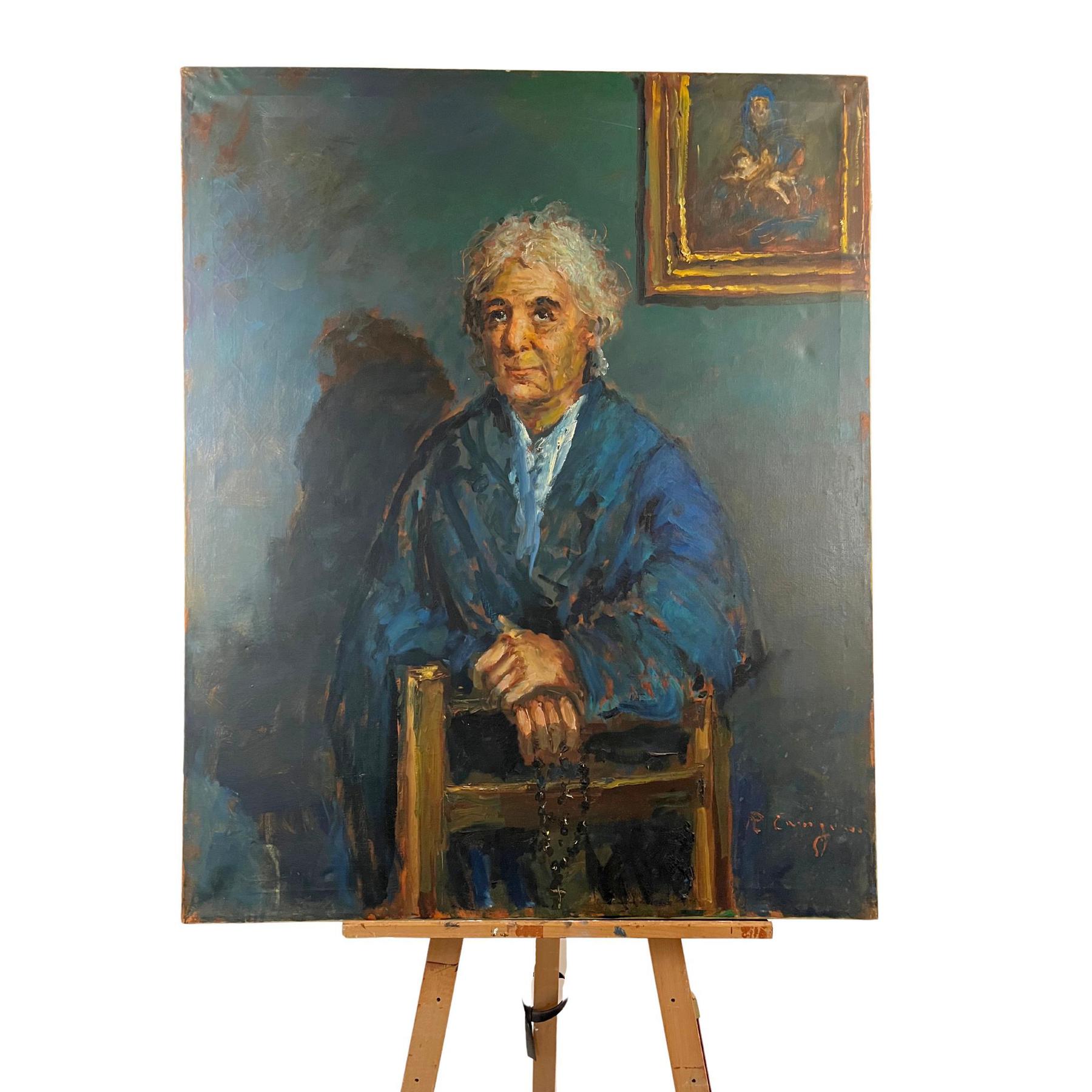 Dipinto olio su tela, raffigurante Uomo in preghiera. XX secolo. Roberto Carignani (1895-1975). Opera datata 1960 autentica sul retro.