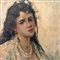 Dipinto olio su pannello di legno, raffigurante ritratto di donna a mani...