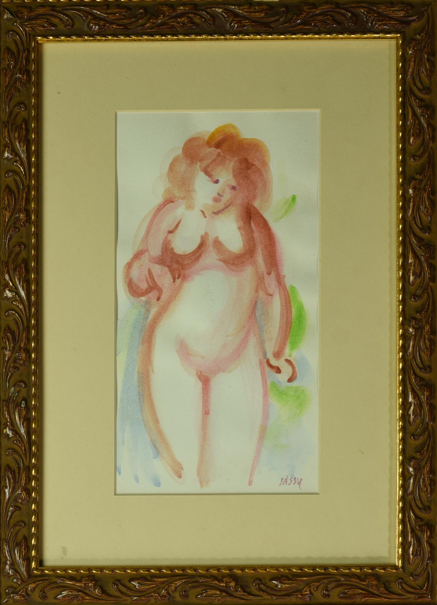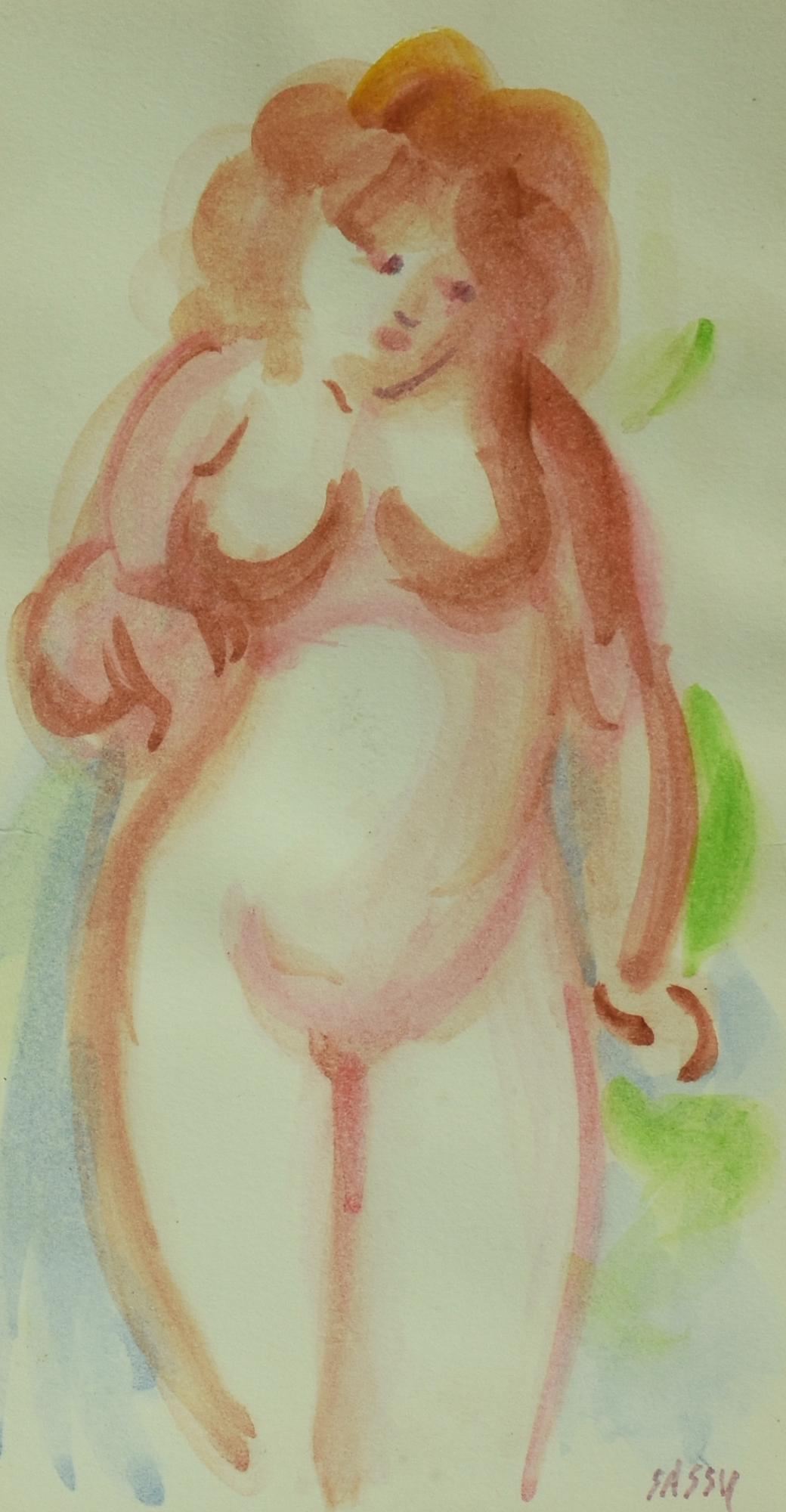 Aligi Sassu FIGURA FEMMINILE acquerello su carta, cm 24x12,5 firma
