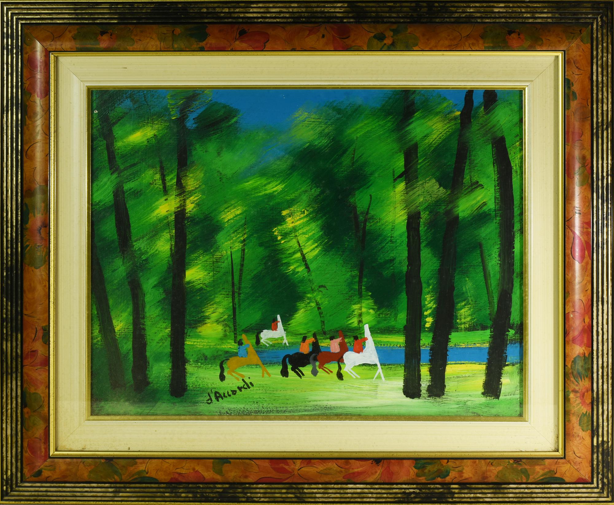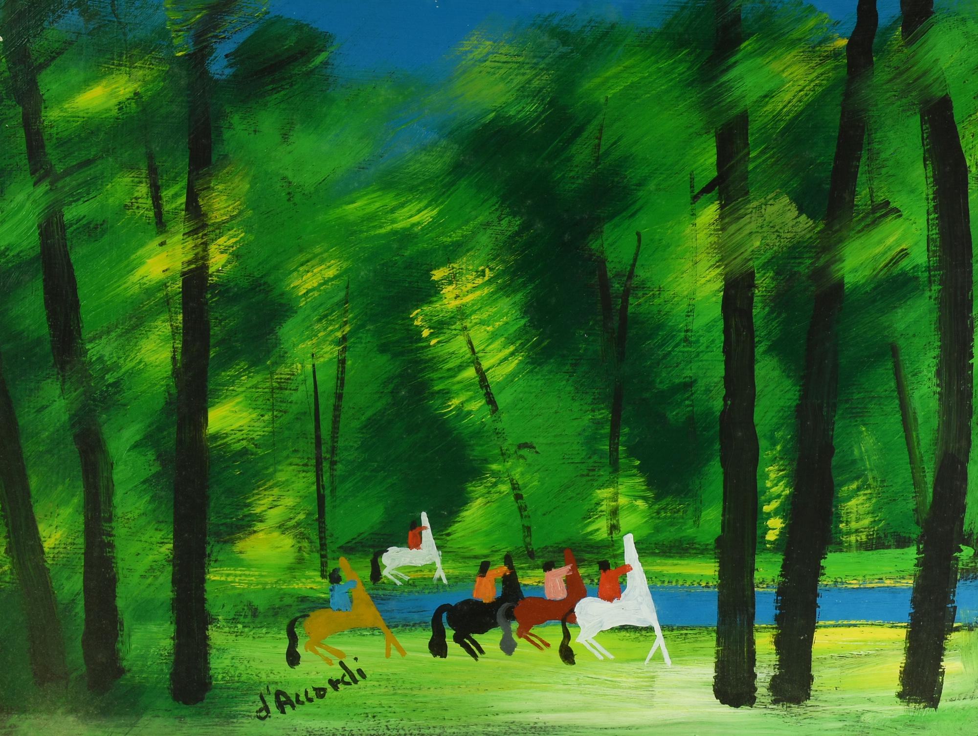 Gian Rodolfo D'Accardi CAVALLI IN CORSA olio su masonite, cm 40x50 firma