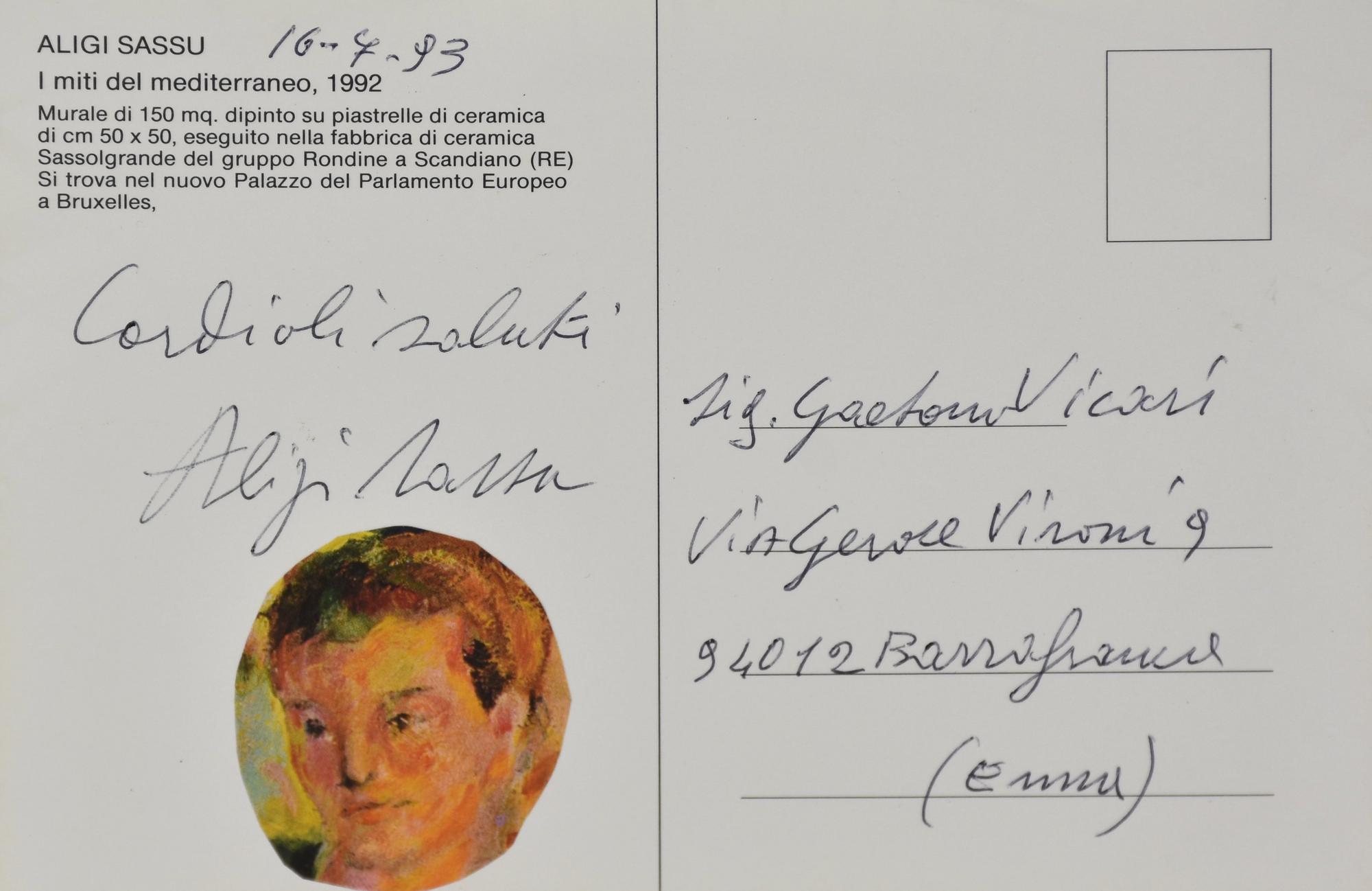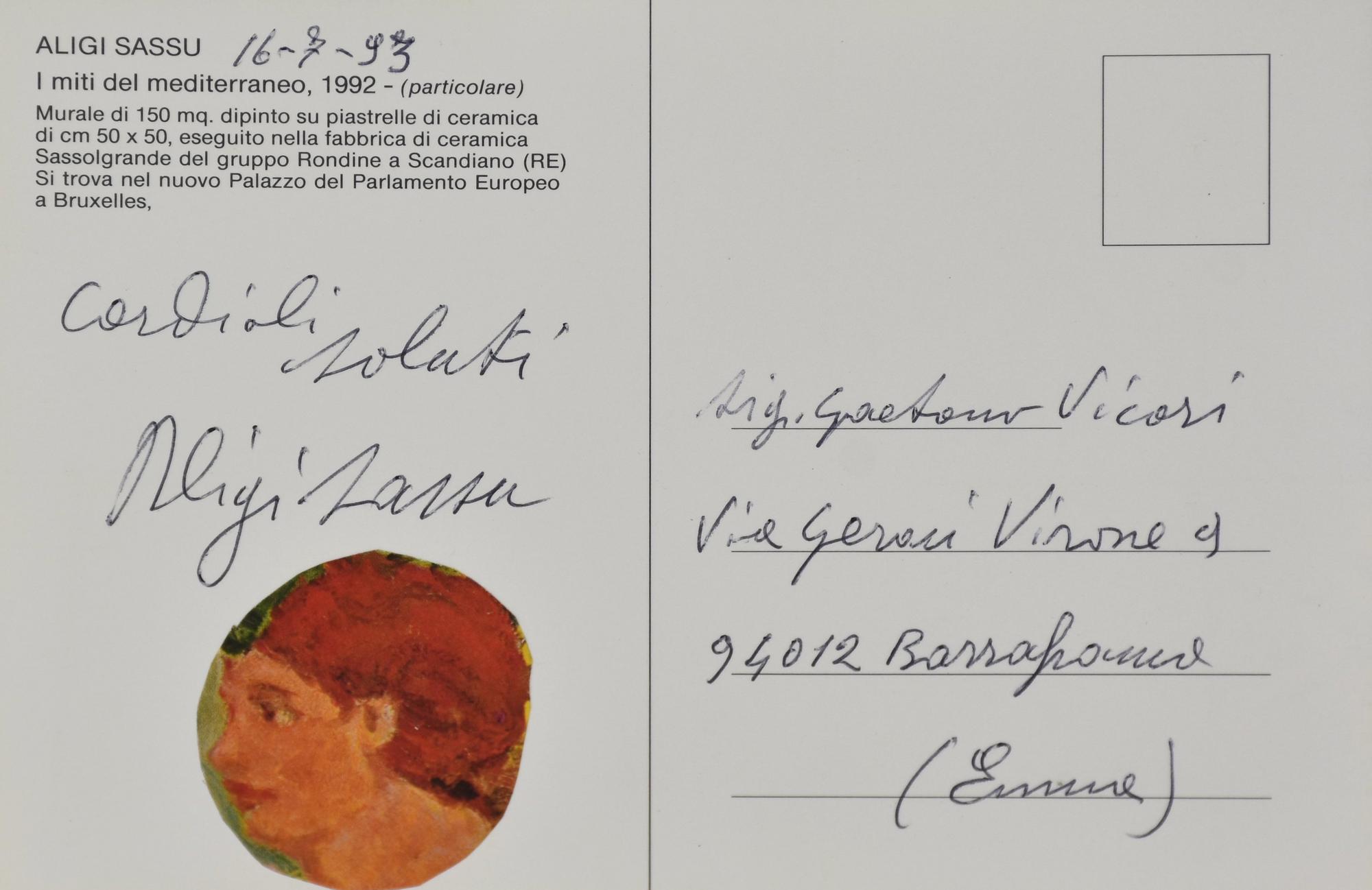 Aligi Sassu LOTTO DI DUE CARTOLINE, 1993 collage su cartoline raffiguranti "I...