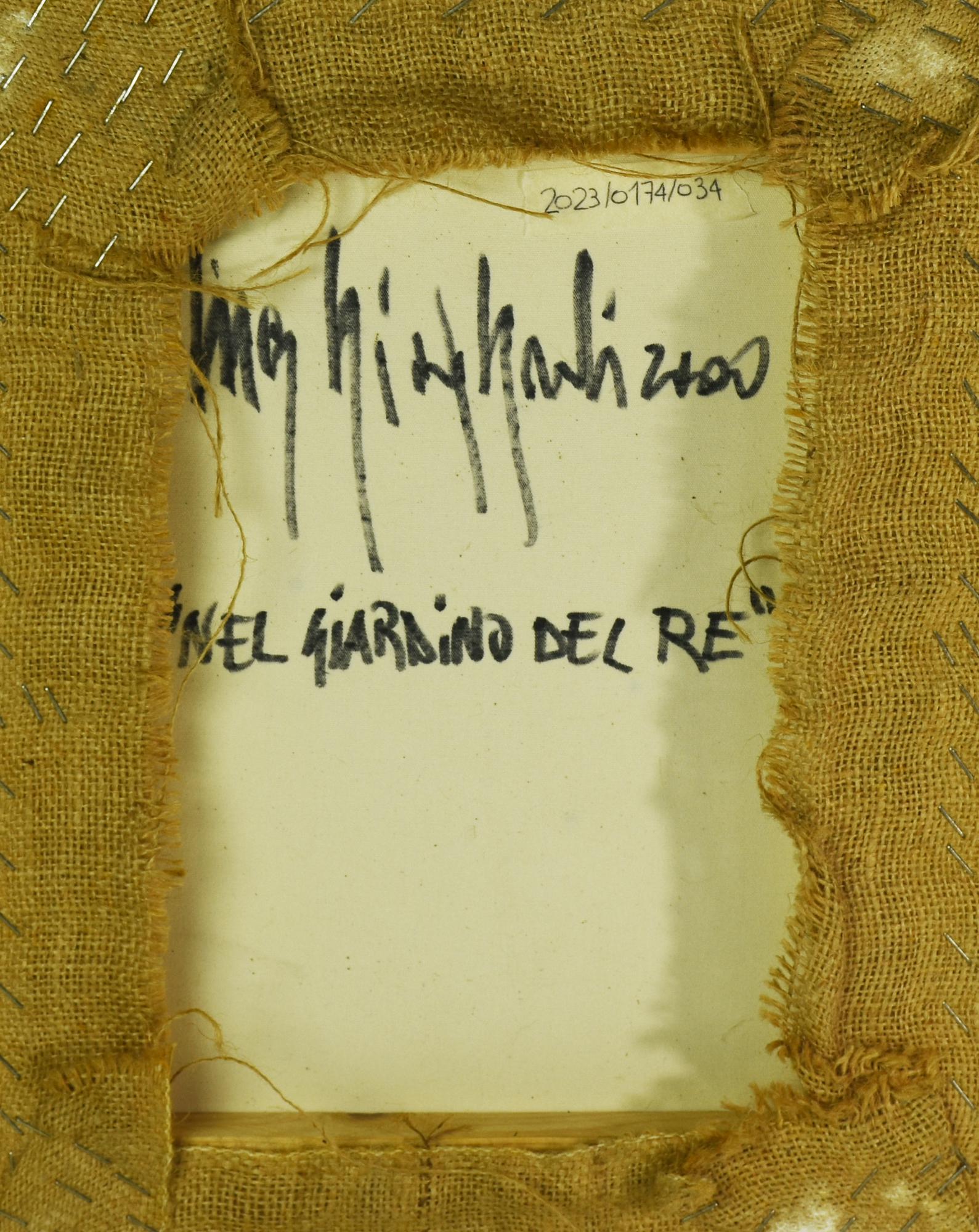 Luca Giovagnoli NEL GIARDINO DEL RE, 2000 tecnica mista su juta, cm 40x30...