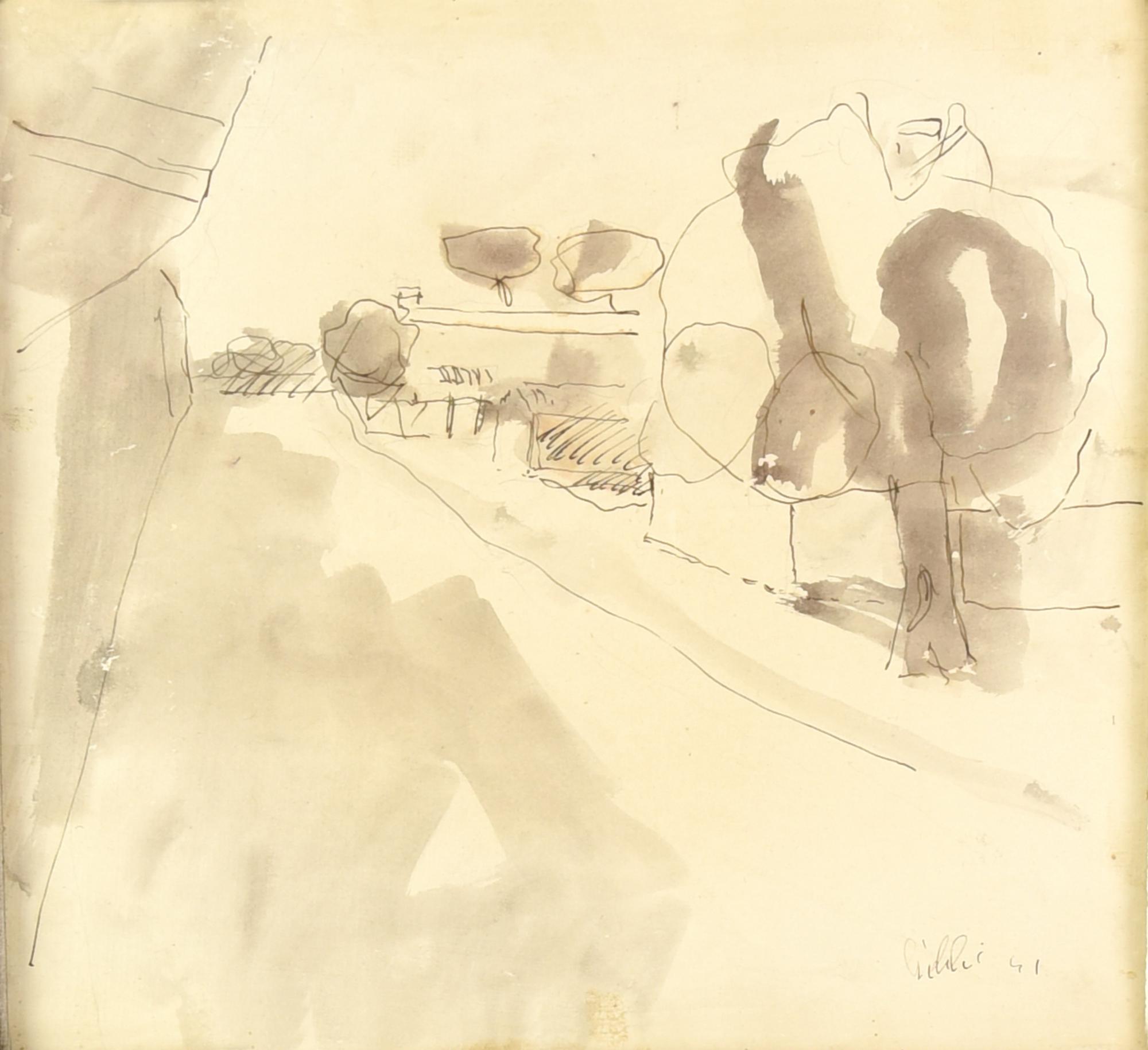 Werner Gilles VIALE ALBERATO pennafeltro, china e inchiostro su carta...