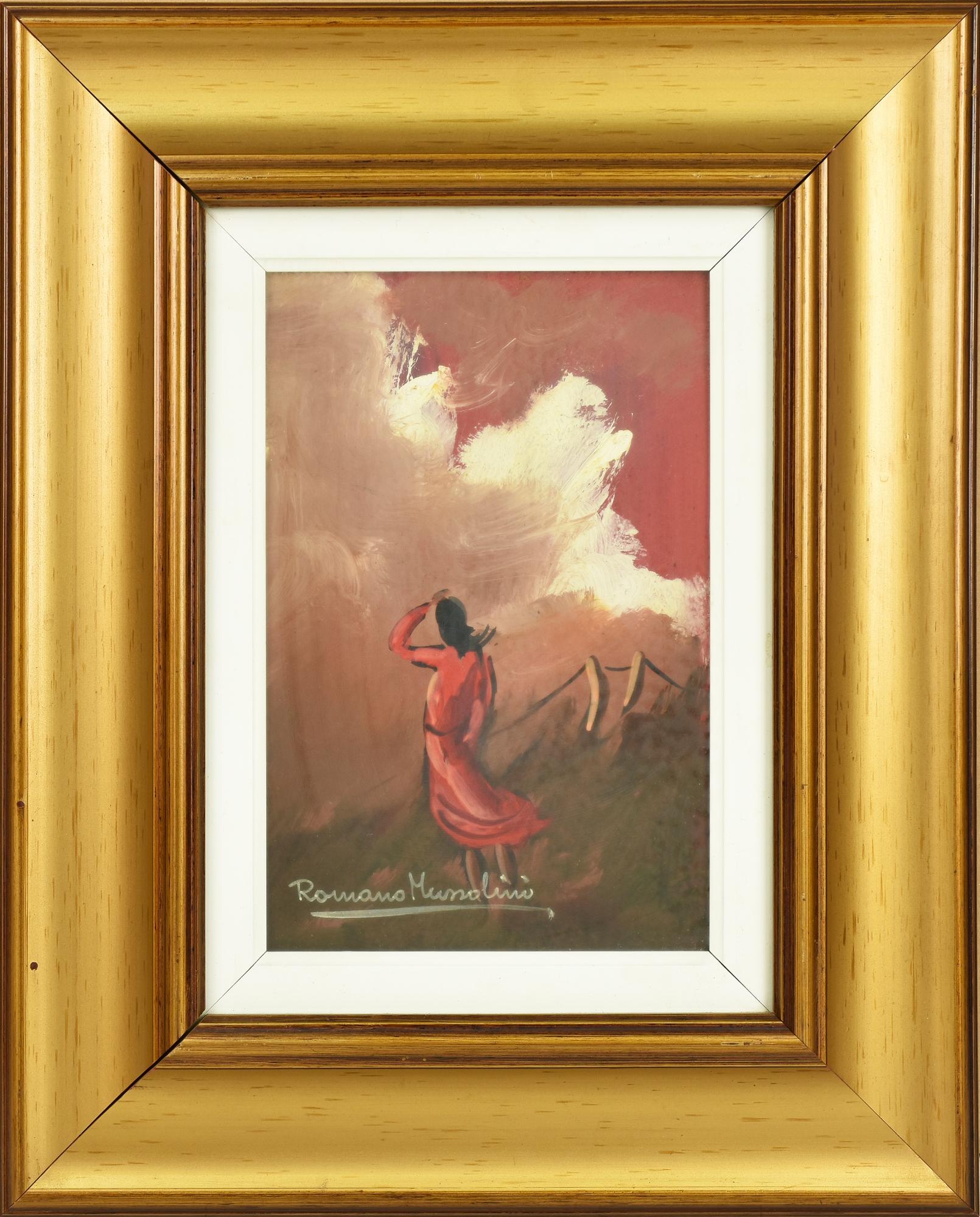 Lot 160 | Romano Mussolini FIGURA AL TRAMONTO olio su masonite, cm 30x20 firma