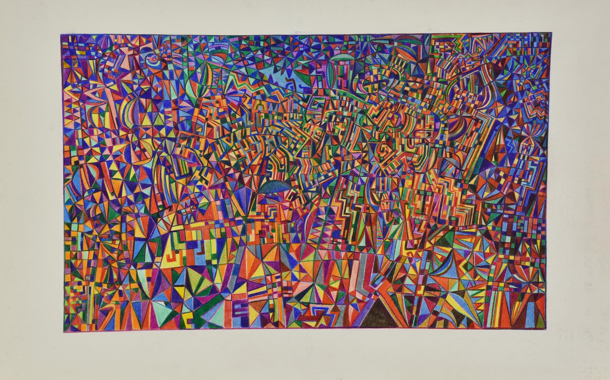 Enzo Branca COMPOSIZIONI, 1980 -matite colorate su carta, cm 33x50 sul...