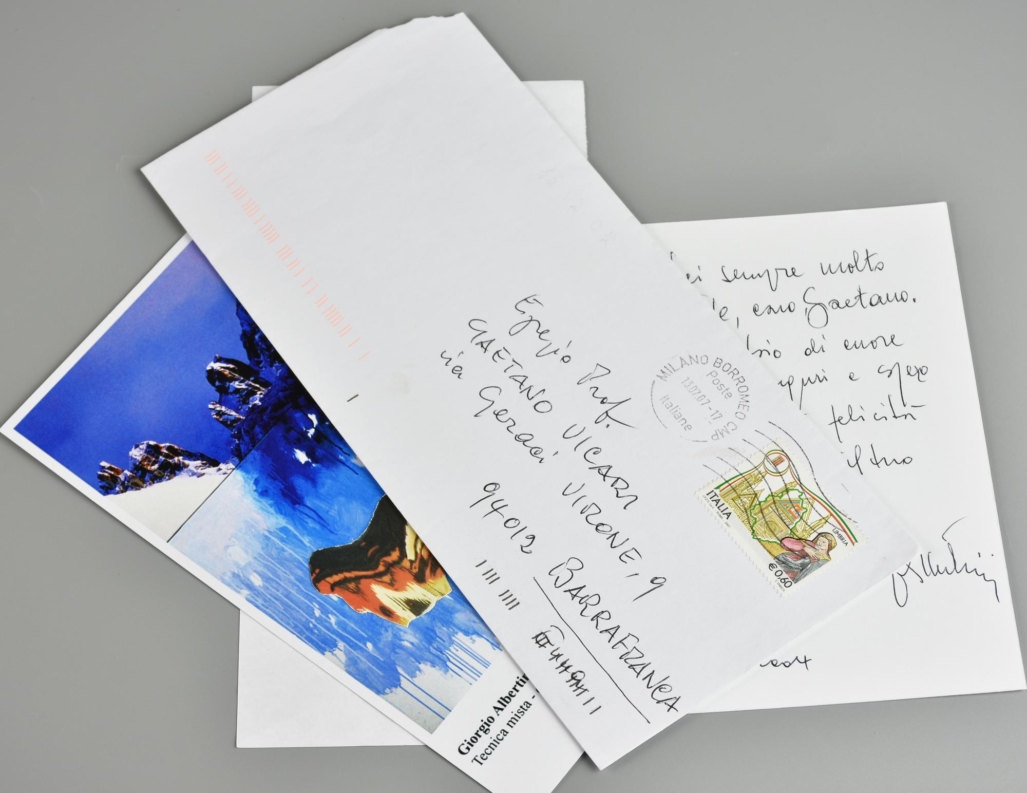 Giorgio Albertini LOTTO composto da: -cartolina con collage con firma e...
