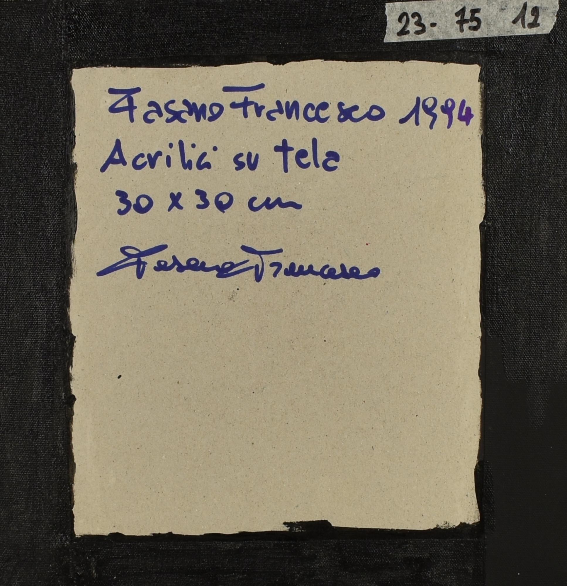 Francesco Fasano SENZA TITOLO acrilico su cartone telato, cm 30x30 sul retro:...