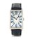Cassa rettangolare massiccia in oro bianco 18 kt con oblò sul fondello chiuso da viti (ottimo). Quadrante argentato con numeri arabi blu smaltati e 24 ore al centro (come nuovo). Movimento n. 789 a carica automatica (come nuovo). Quadrante, cassa e movimento firmati. Completo di cinturino, fibbia in oro bianco originali, astuccio e certificato originali del 06/2000, certificato di Besancon.