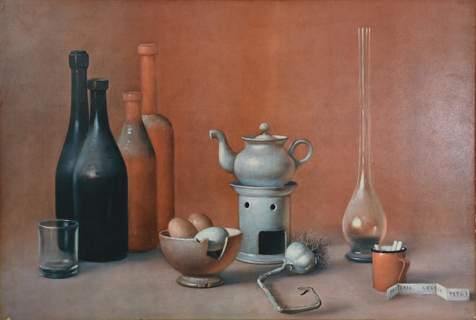 Proferio Grossi NATURA MORTA oleografia su carta intelata, cm 50x70 firma