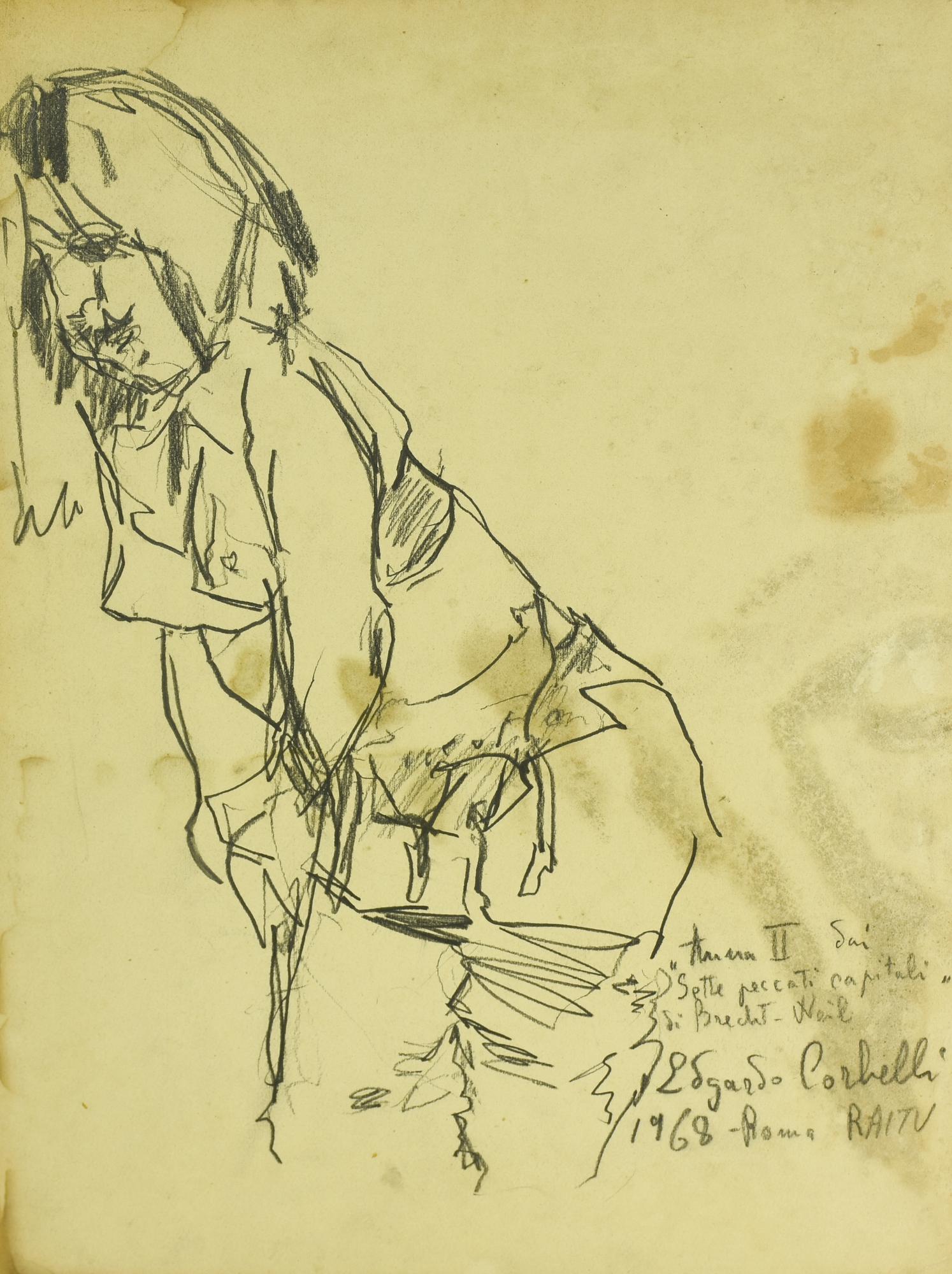 Edgardo Corbelli TRAMA II DAI SETTE PECCATI CAPITALI, 1968 carboncino su...