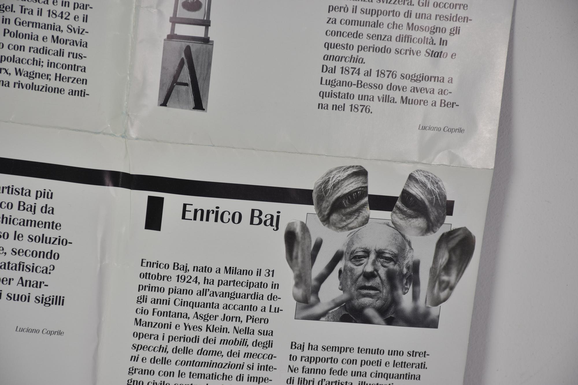 manifesto edito in occasione della mostra Baj - Bakunin dell'ottobre - novembre 1996, l'intervento dell'artista si trova nella parte dedicata all'invito alla mostra