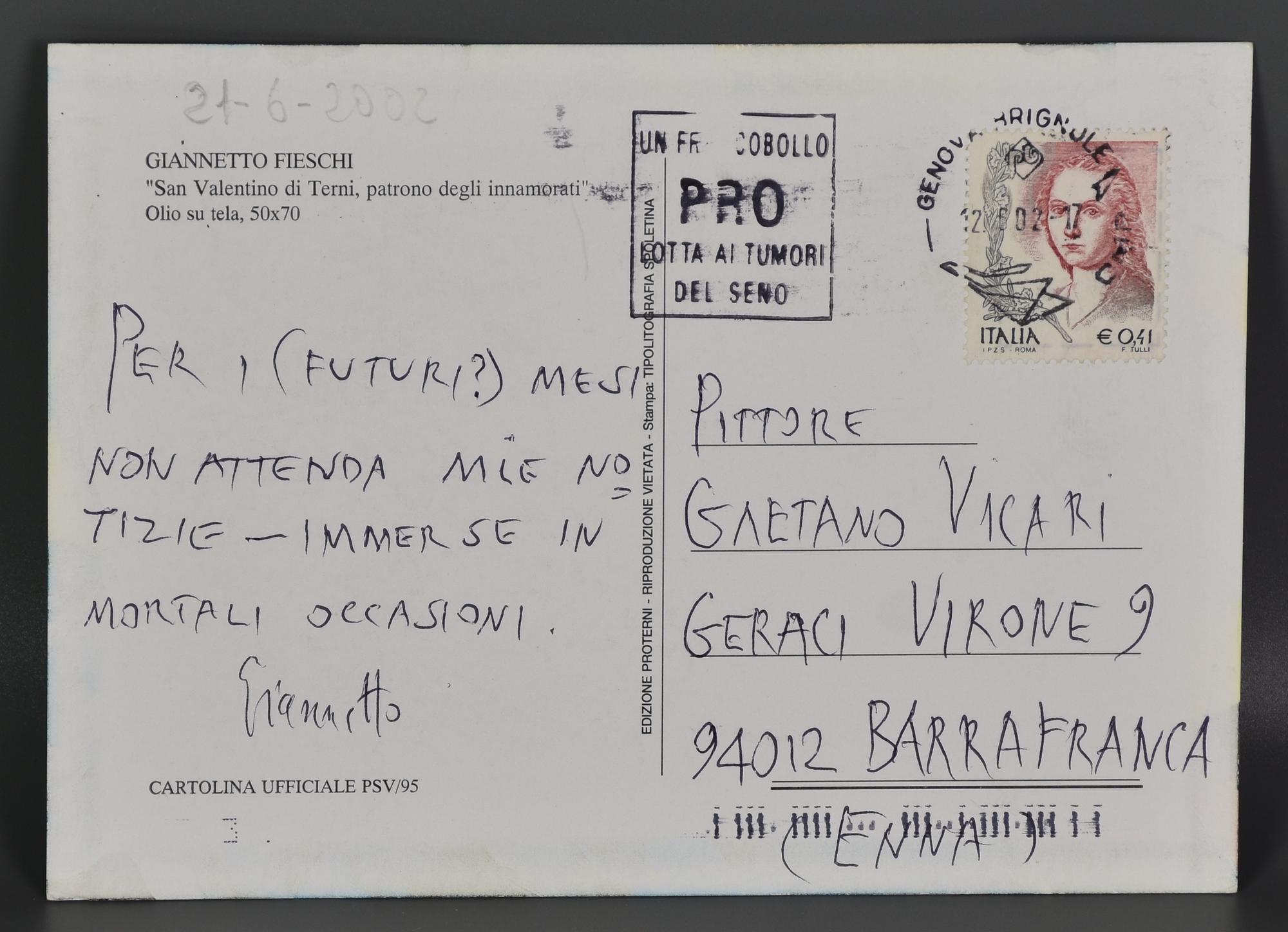 Giannetto Fieschi APPLICAZIONE, 2002 collage su cartolina raffigurante "San...
