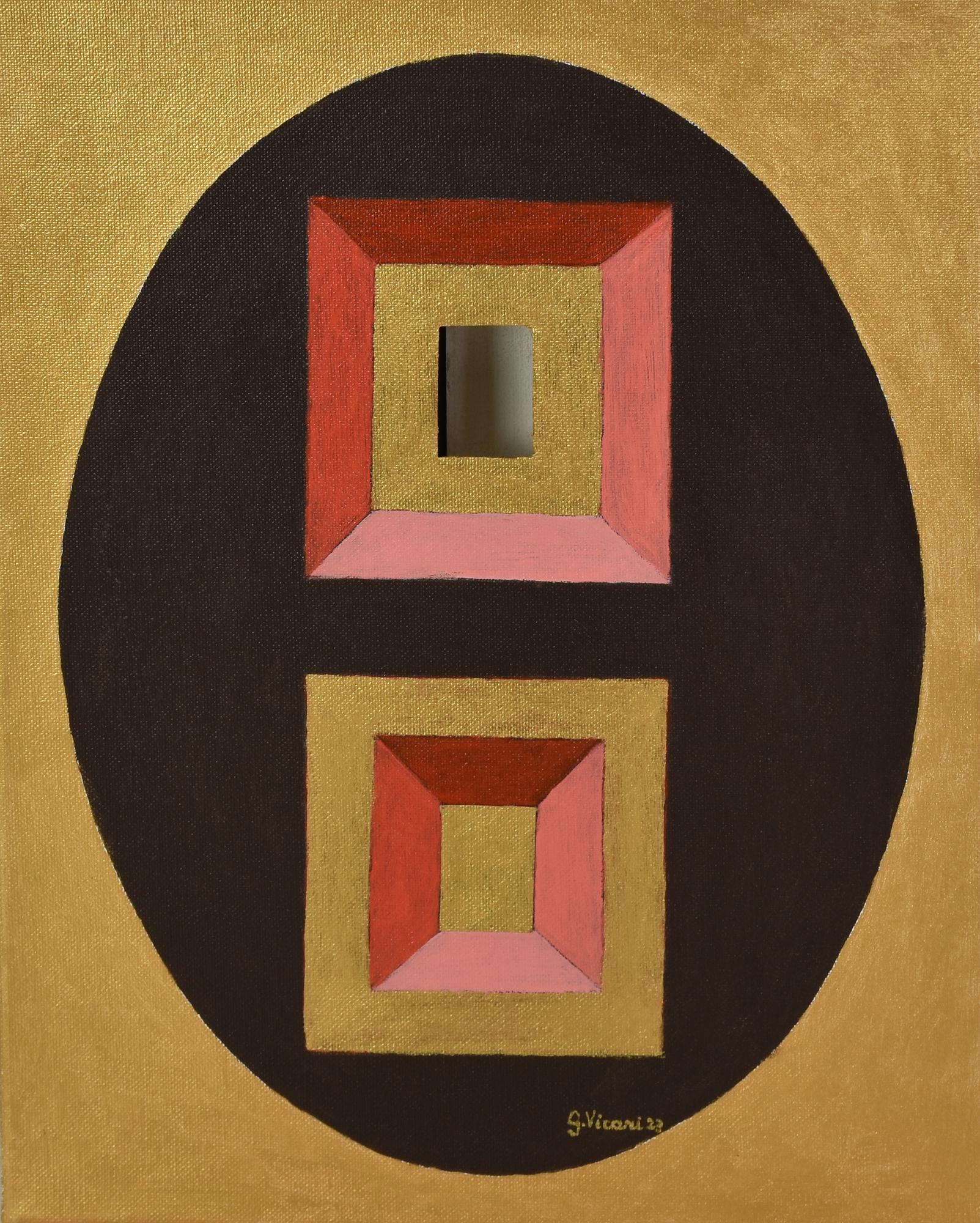 Gaetano Vicari DIASPORA COSMICA,2023 acrilico su tela con buco e collage, cm...
